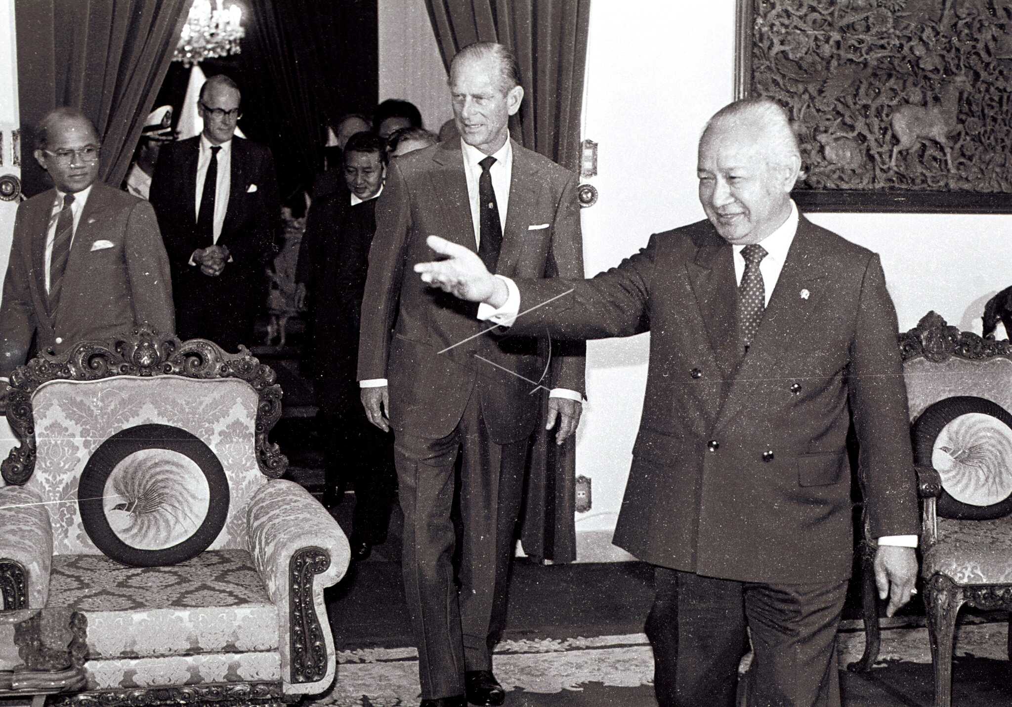 President Soeharto (right) receives a courtesy call from the husband of British Queen Elizabeth II, Prince Philip (second right), at the Merdeka Palace, October 24, 1989. ANTARA FOTO/H02/H05/asf/yu/sa.