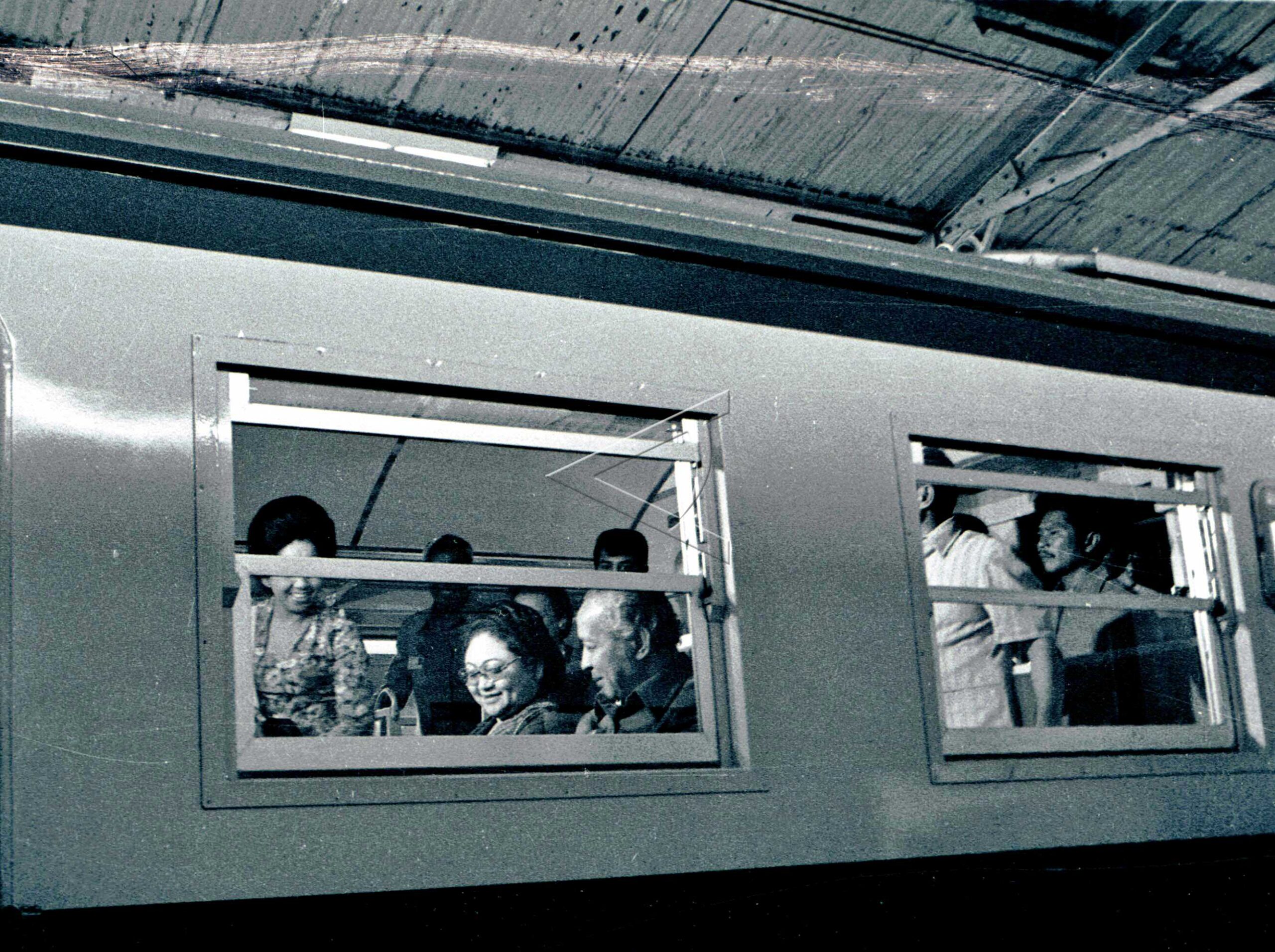 President Soeharto and First Lady Tien are seen inside the first electric railroad en route from Jakarta to Bogor, August 12, 1976. ANTARA FOTO/Rachman/Koz/hp/asf/tom.