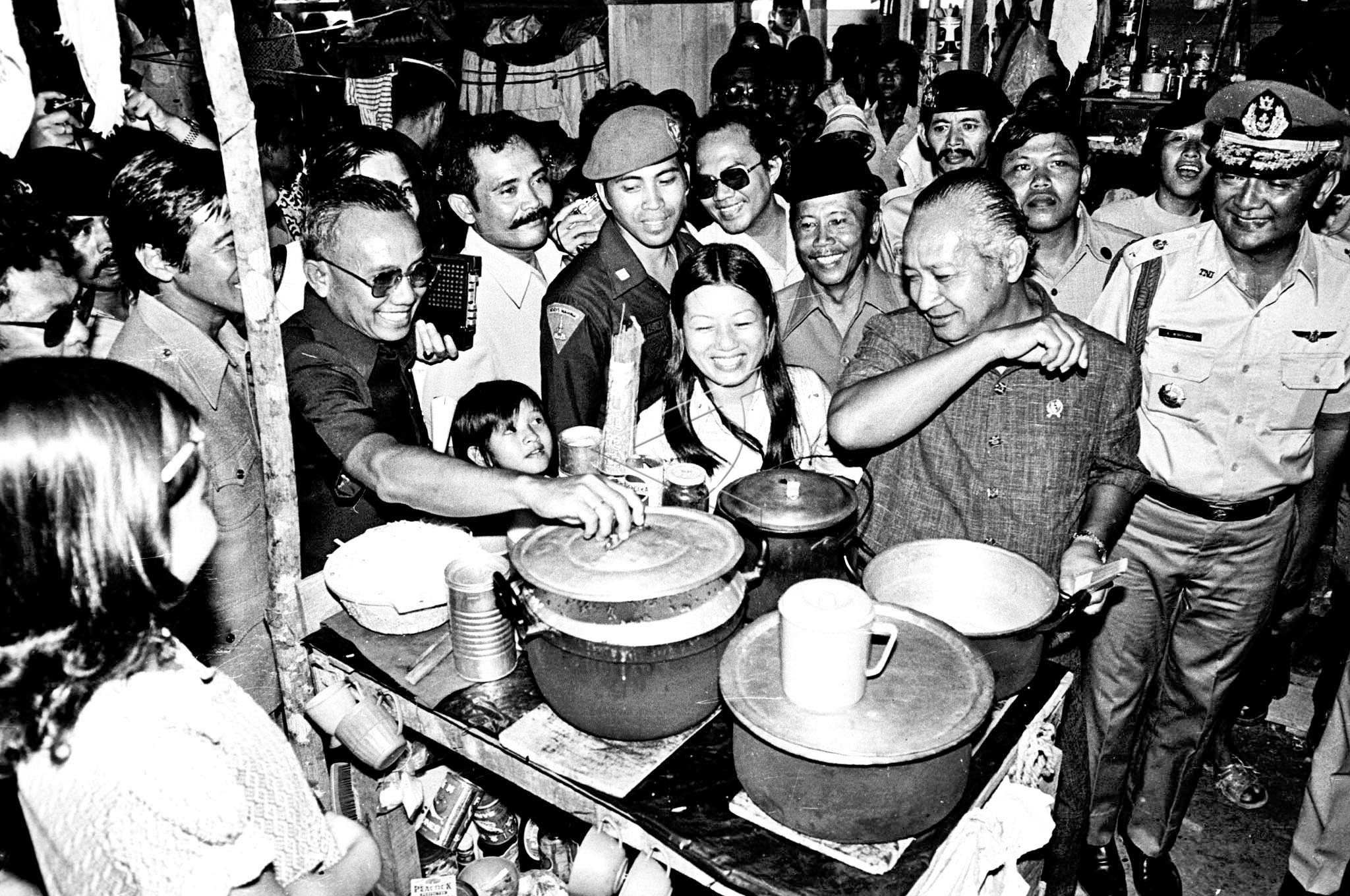 President Soeharto visits a refugee kitchen of Vietnamese before going to Singapore, in Galang Island, Riau Islands, September 18, 1979. ANTARA FOTO/AR/ss/hp/asf/tom.