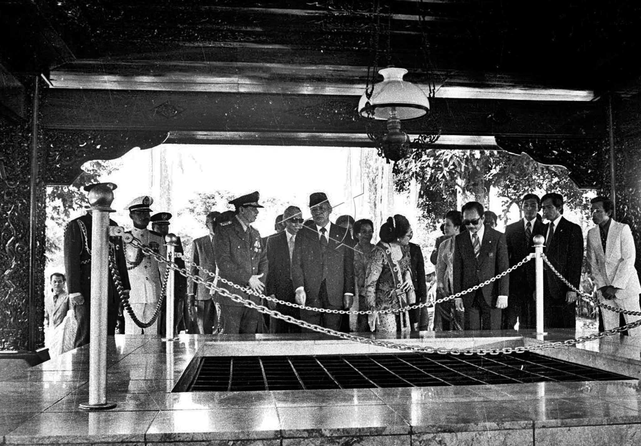 President Soeharto and First Lady Tien Soeharto together with Vice President Adam Malik and his wife Nelly Adam Malik and invited guests visit “Sumur Lubang Buaya” after ceremony of Pancasila Reverence Day in Jakarta, October 1, 1978. ANTARA FOTO/Mawardi Muis/hm/asf/78.