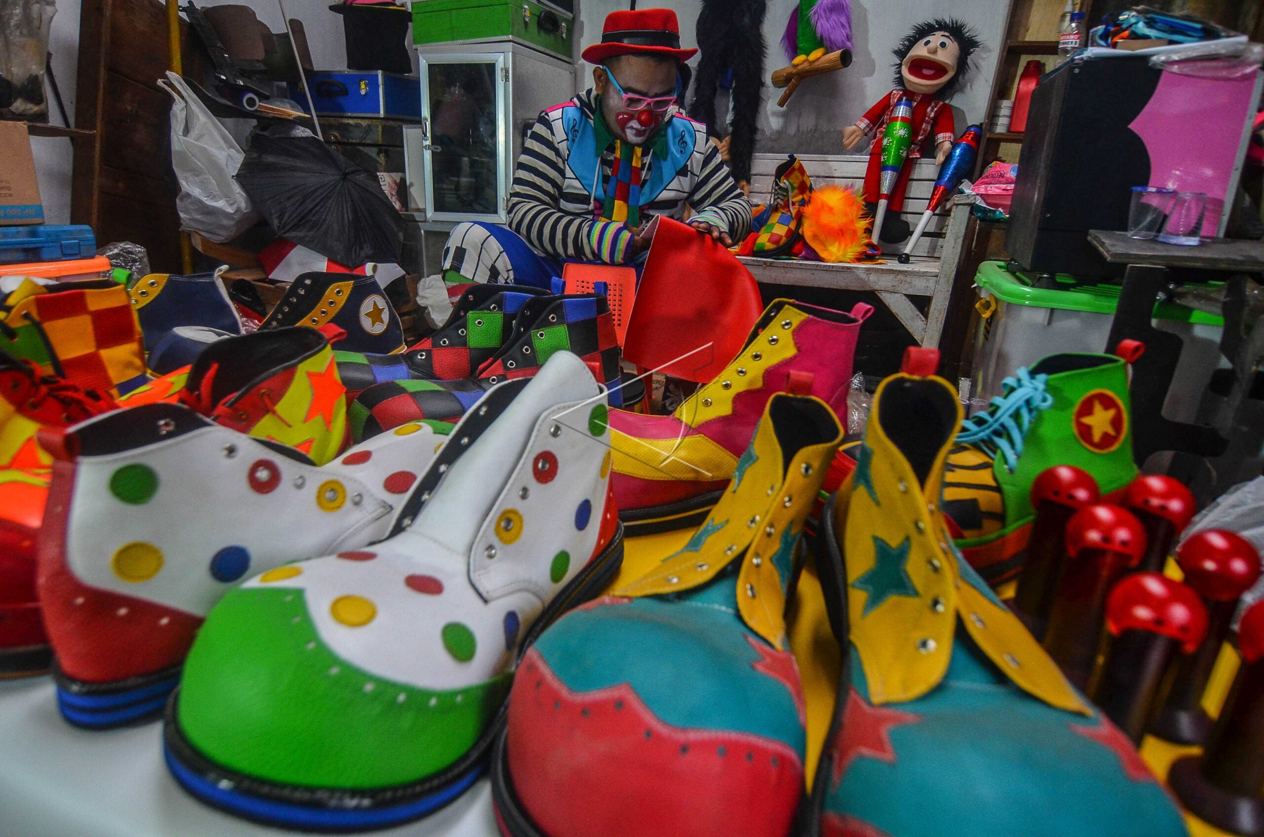 Tasik Gallery Clown Activist (BGT) Andi Purnama finishes making clown shoes in Mancogeh Village, Tasikmalaya, West Java, December 17, 2019. ANTARA FOTO/Adeng Bustomi/dw/tom/sa.