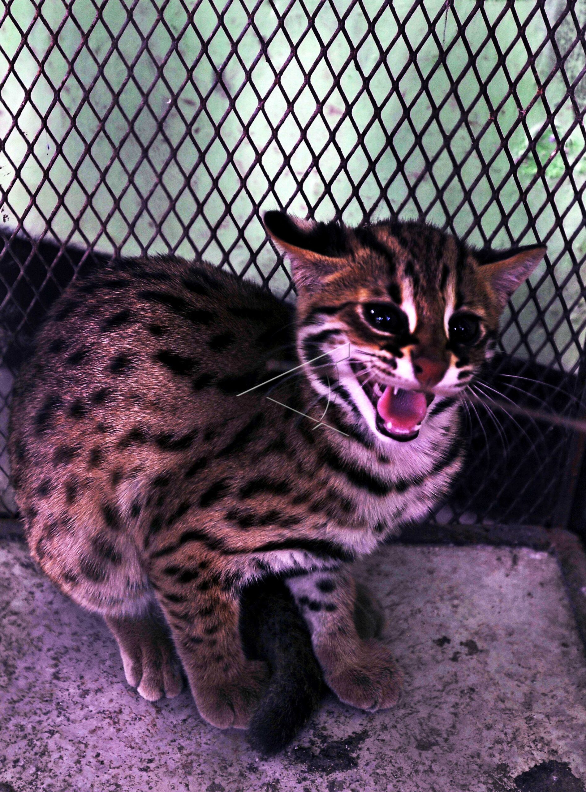 Leopard cat (Prionailurus bengalensis) which given by residents to Natural Resources Conservation Center is inside a cage in Serang, Banten, July 27, 2019. ANTARA FOTO/Asep Fathulrahman/dw/tom.