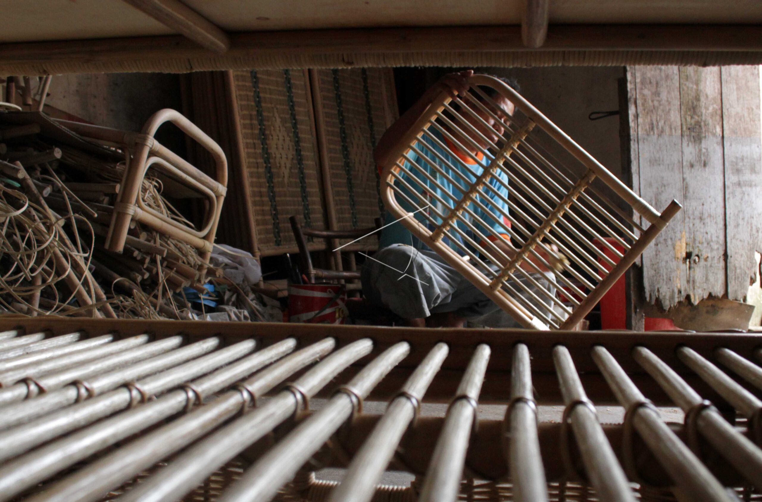 A Worker finishes making chairs made from rattan in Makassar, South Sulawesi, February 14, 2019. ANTARA FOTO/Arnas Padda/dw/tom/sa.