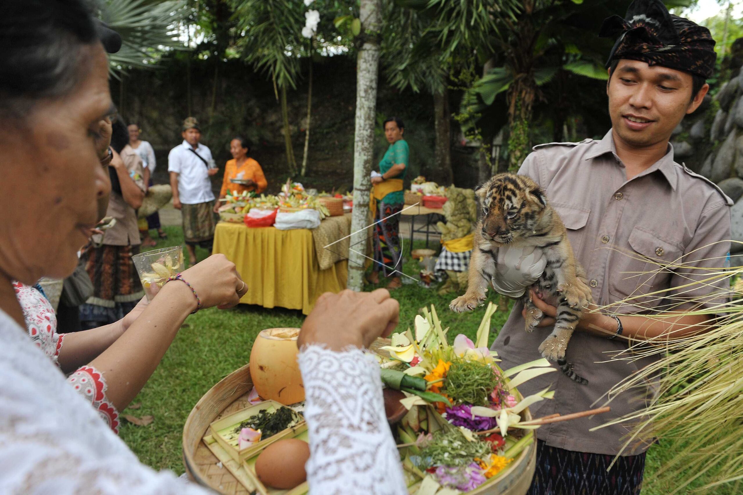 Hindu people pray for orangutan during Tumpek Kandang Day or sacred day for pets at Bali Zoo in Gianyar, Bali, November 26, 2016. ANTARA FOTO/Nyoman Budhiana/dw/tom.