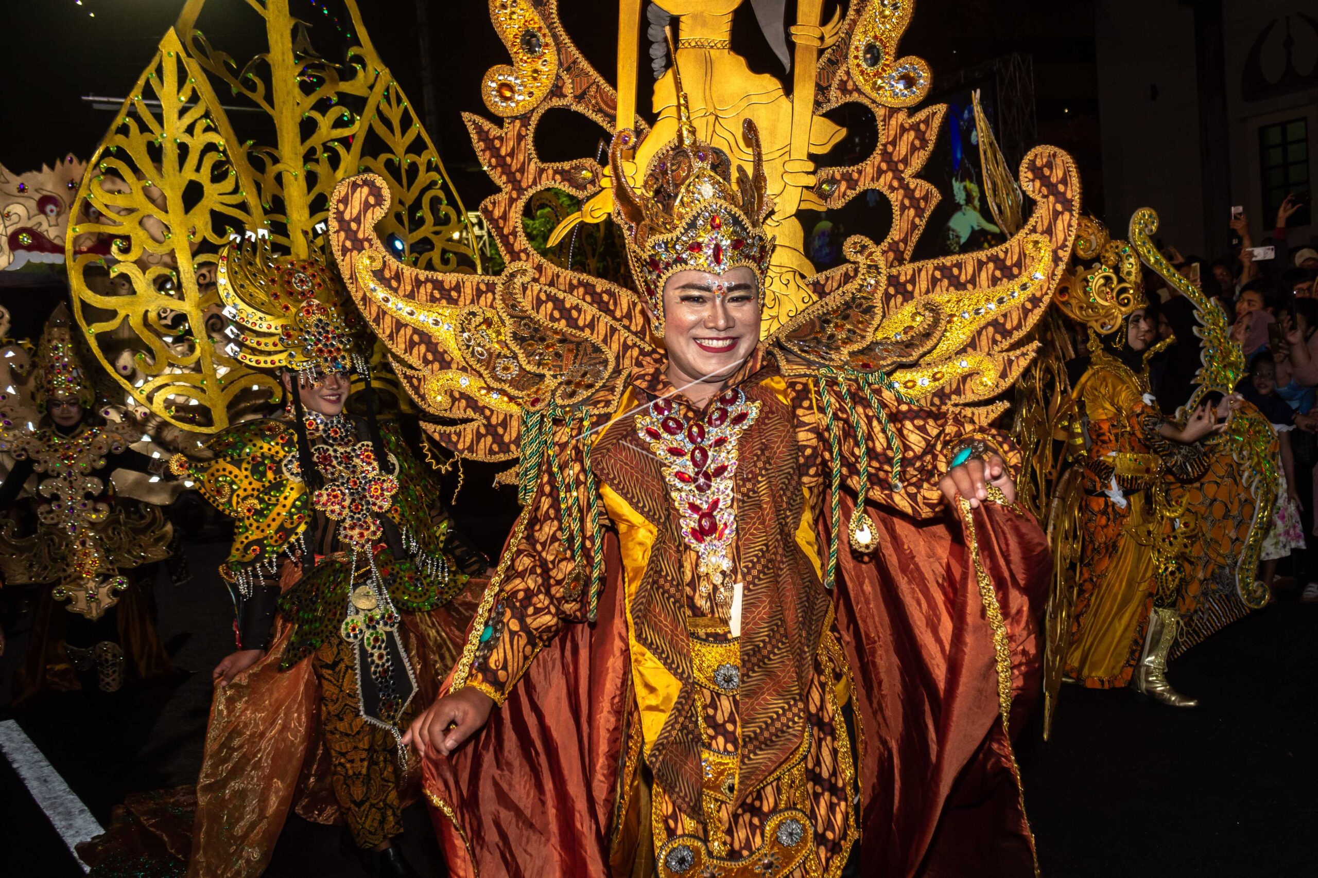 Participants take part in the Puppet defile while participating in the 2019 Semarang Night Carnival parade in Semarang, Central Java, July 3, 2019. ANTARA FOTO/Aji Styawan/foc/dw/nym
