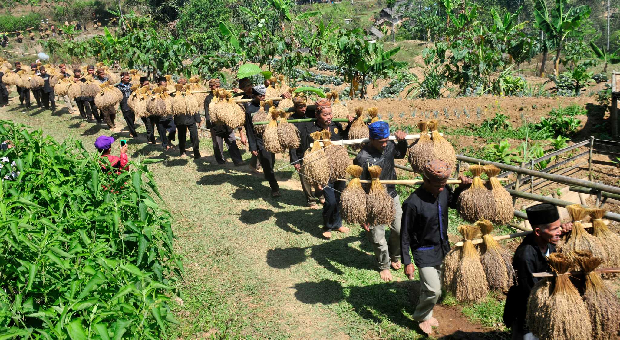Kasepuhan Ciptagelar indigenous people bring the crops when they were participating the highlight of ‘Seren Taun’ in Sukabumi Regency, West Java, September 2, 2012. ANTARA FOTO/Agus Bebeng/ss/pd/dw/wpa.