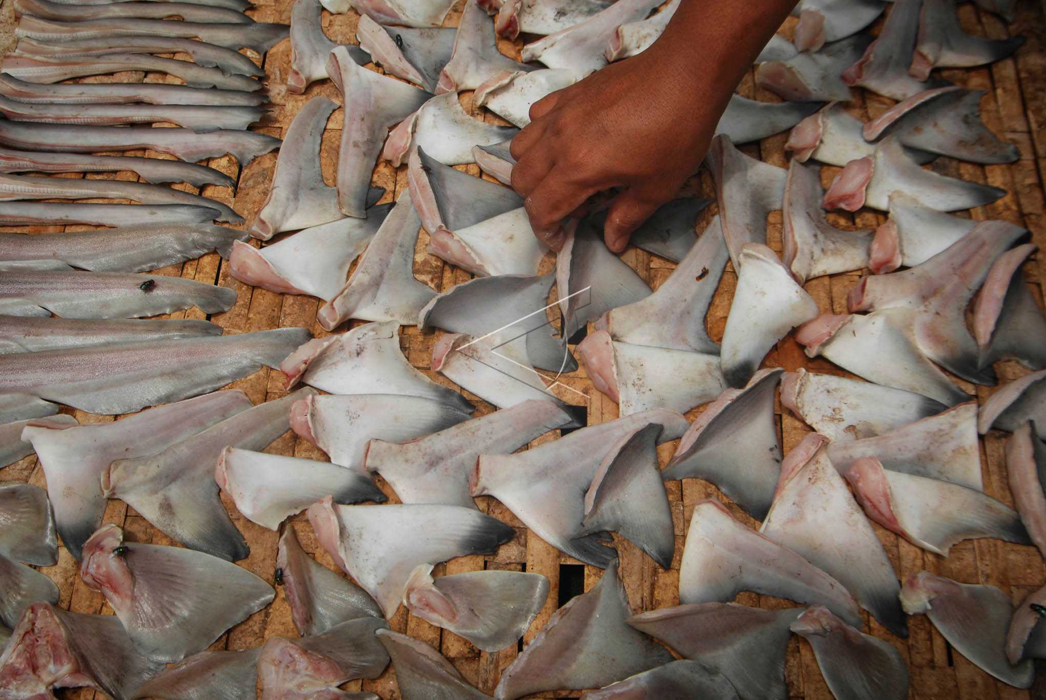 Worker finishes the drying process of shark fins which to be sent to Jakarta, Surabaya, or to be exported to Hong Kong, in Demaan, Jepara, Central Java, January 27, 2015. ANTARA FOTO/Andreas Fitri Atmoko/mes/dw/nym.