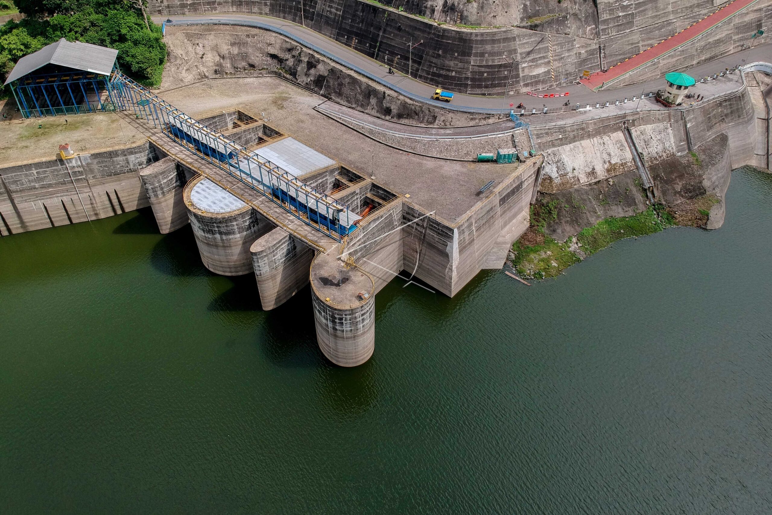 Aerial view of the Cirata Reservoir dam to be built Indonesia’s first floating Solar Power Plant (PLTS) in West Bandung Regency, West Java, January 3, 2020. ANTARA FOTO/Raisan Al Farisi/dw/pras.