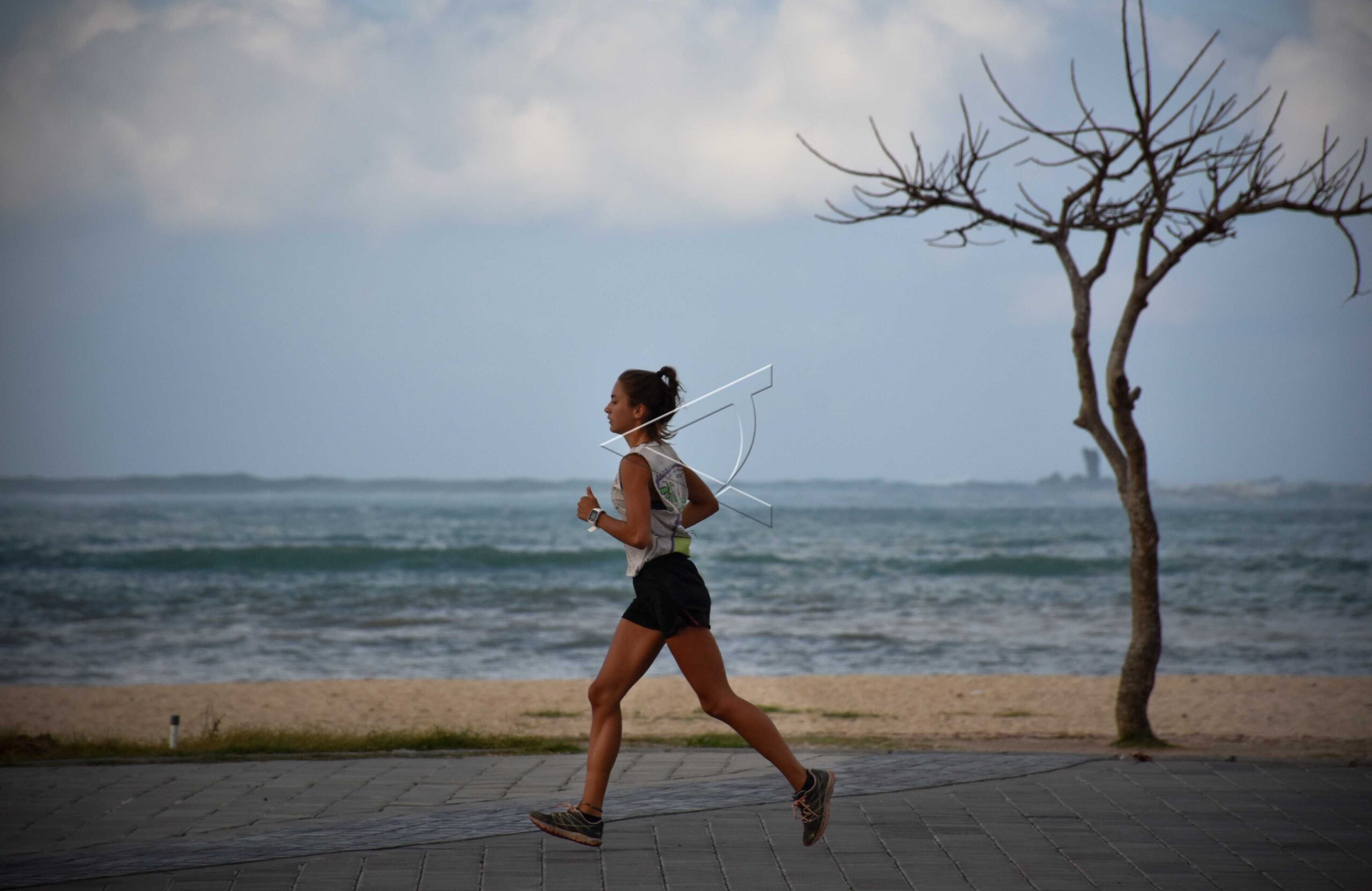 A foreign tourist runs in Kuta Beach Park The Mandalika in Kuta Village, Pujut District, Praya, Central Lombok, West Nusa Tenggara, July 25, 2018. ANTARA FOTO/Ahmad Subaidi/dw/pras.