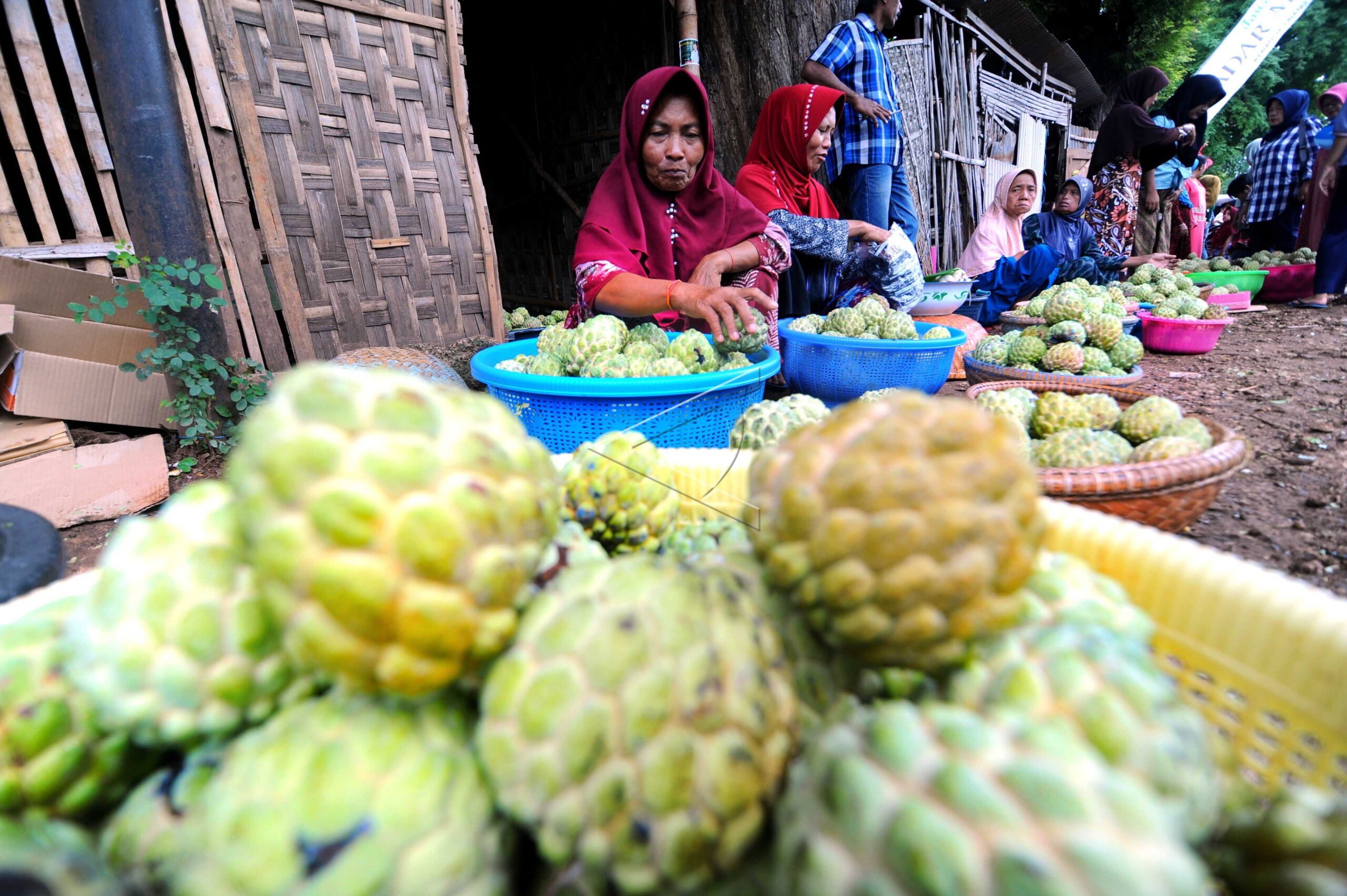 Traders arrange their srikaya fruit during Srikaya Festival in Sumenep, East Java, Maret 24, 2019. ANTARA FOTO/Saiful Bahri/hp/dw/sa.