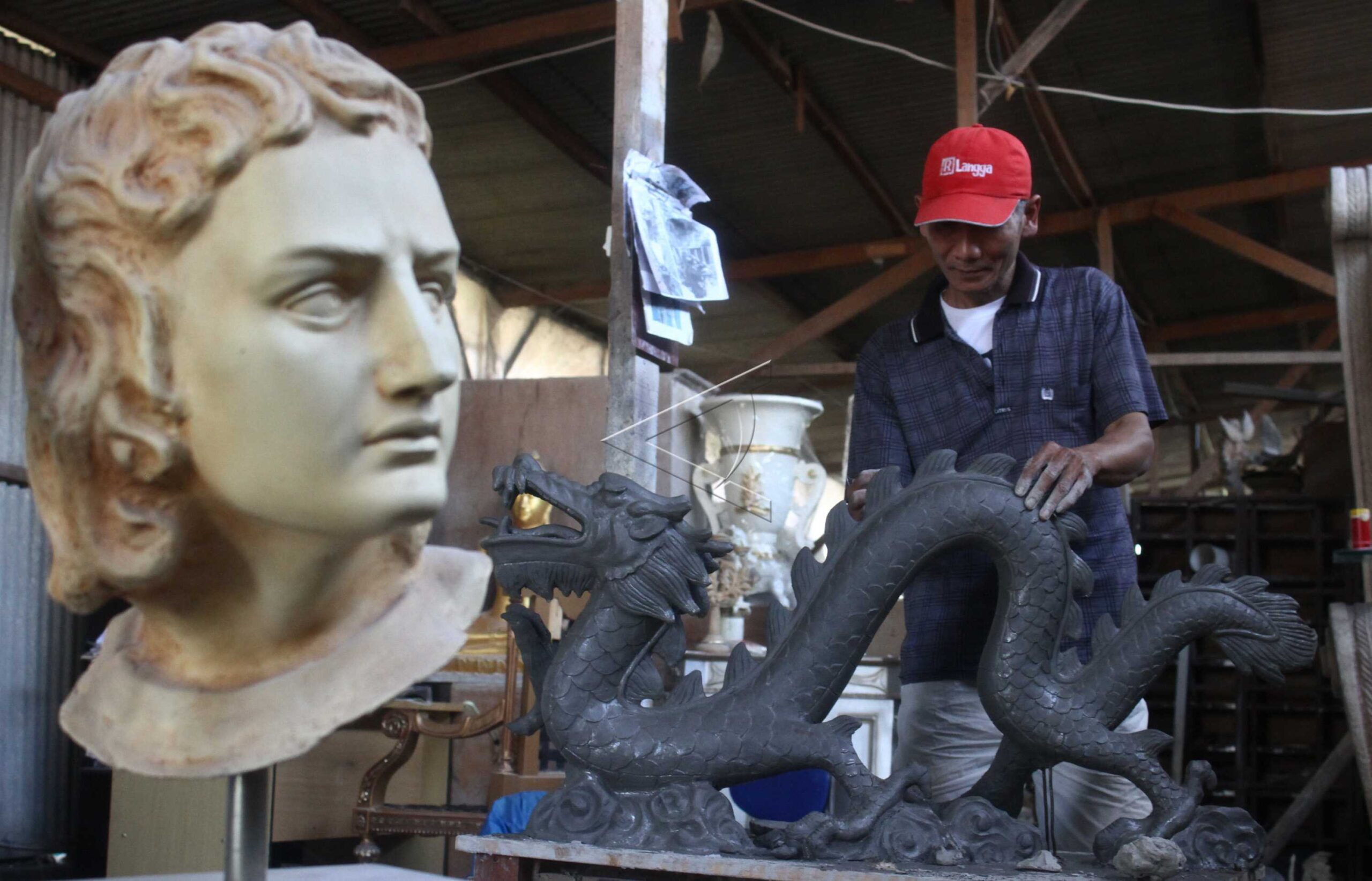 A craftsman completes the making of loro blonyo statue or a couple in Yogyakarta, January 24, 2017. ANTARA FOTO/Andreas Fitri Atmoko/dw/tom/sa.