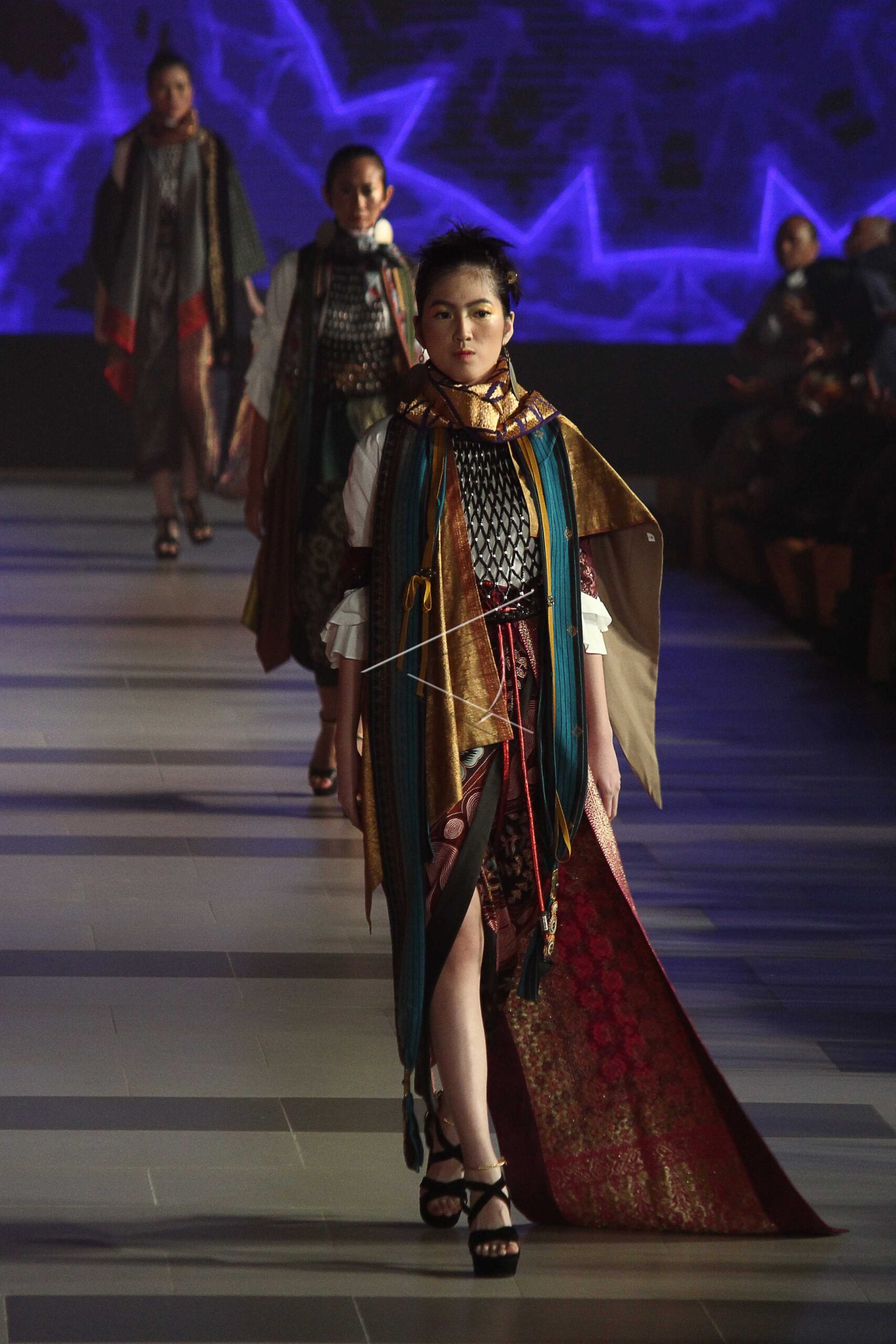 Model demonstrates Deden Siswanto’s design with the theme “Ethnic” at the 2018 Surabaya Fashion Parade (SFP) in Surabaya, East Java, Wednesday (May, 2). ANTARA FOTO/Moch Asim/kye/dw/wpa/sa.
