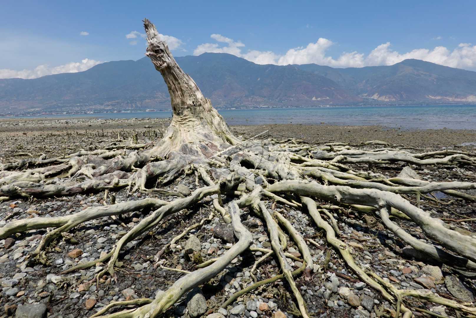 One remaining mangrove tree in a location affected by the Palu and Donggaladi earthquake and tsunami, stands tall on Talise beach, Palu, Central Sulawesi, on September 26, 2019. ANTARA FOTO/Oscar Motuloh/pras/dw/sa.