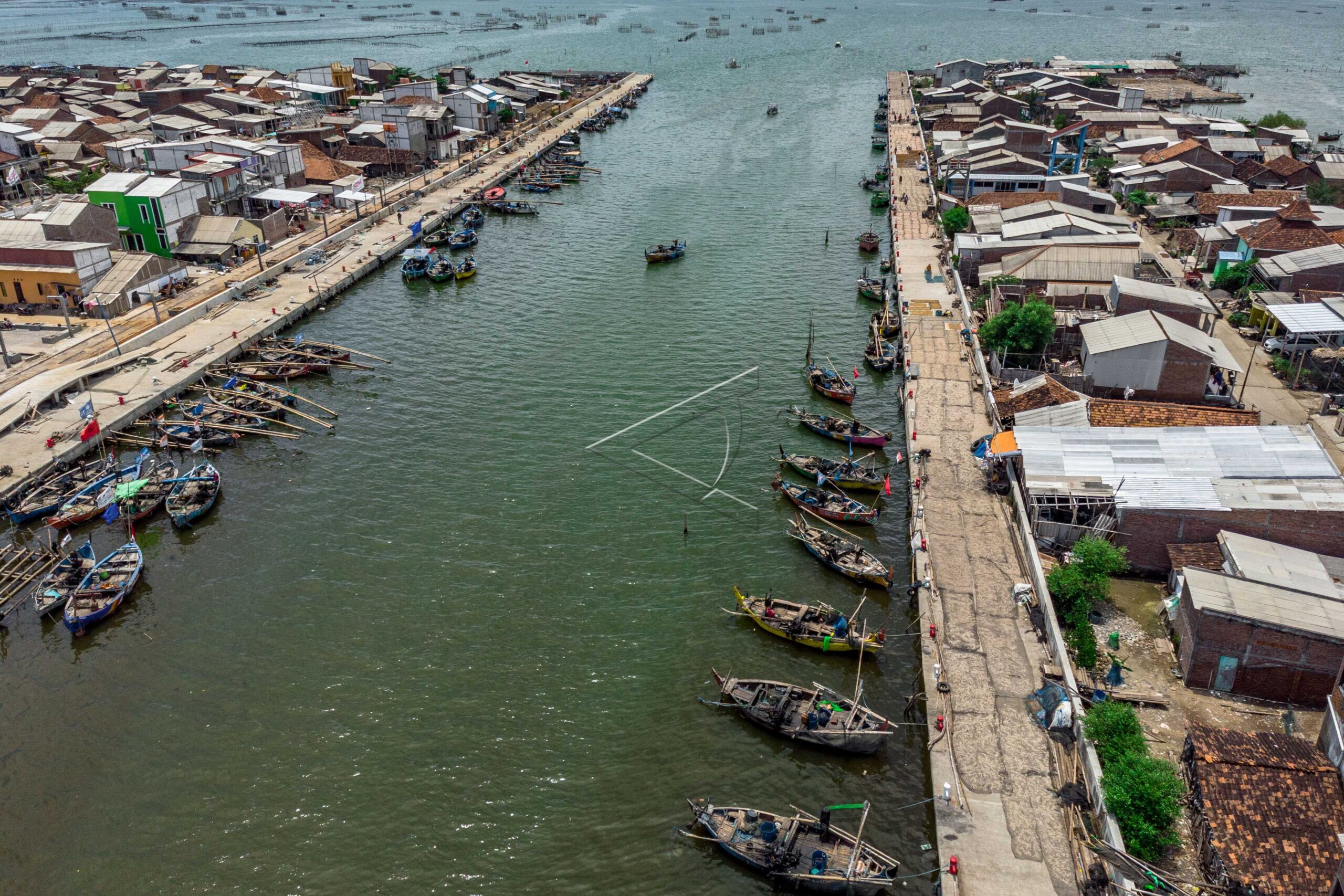 Aerial photo of the pier and fishing settlement of Kampung Bahari Tambaklorok in Semarang, Central Java, on Maret 11, 2019. ANTARA FOTO/Aji Styawan/ama/dw/sa.