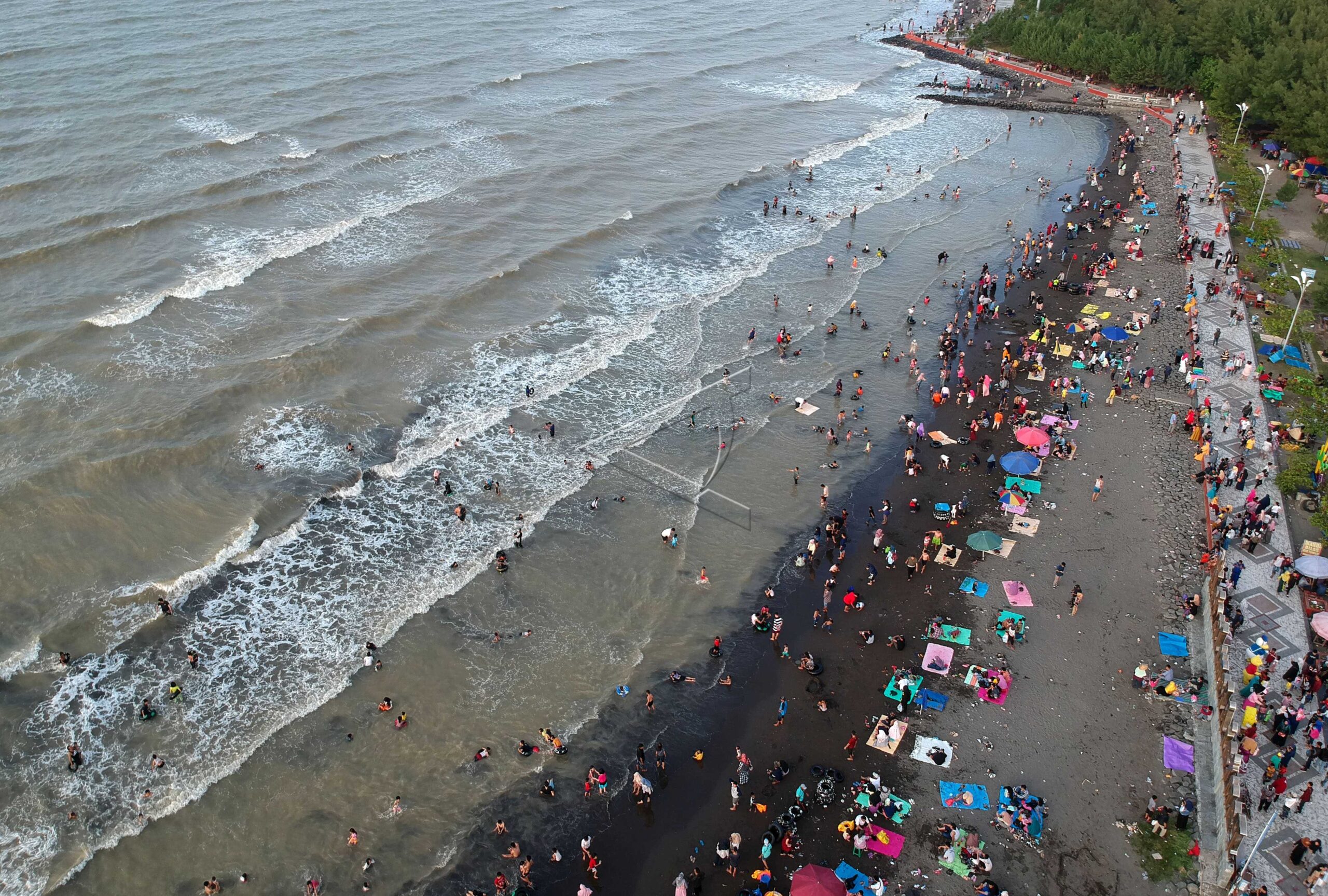 Tourists play in water at Tegal’s Alam Indah Beach (PAI), Central Java, June 6, 2019. ANTARA FOTO/Oky Lukmansyah/dw/tom.