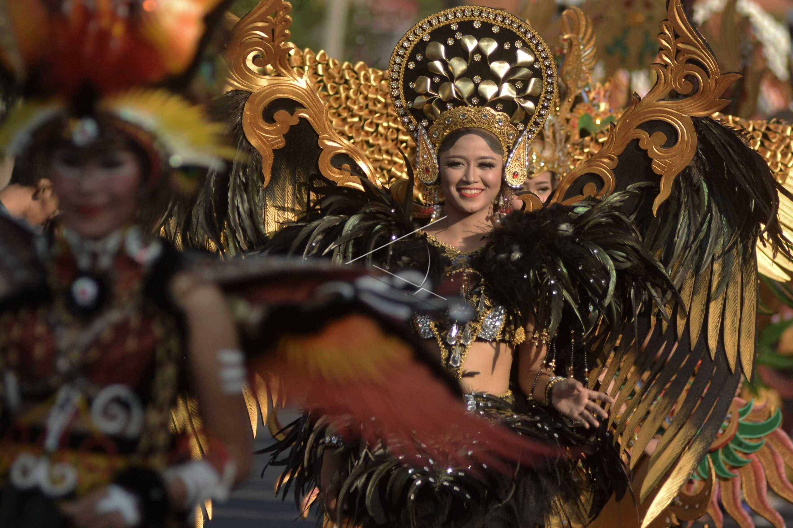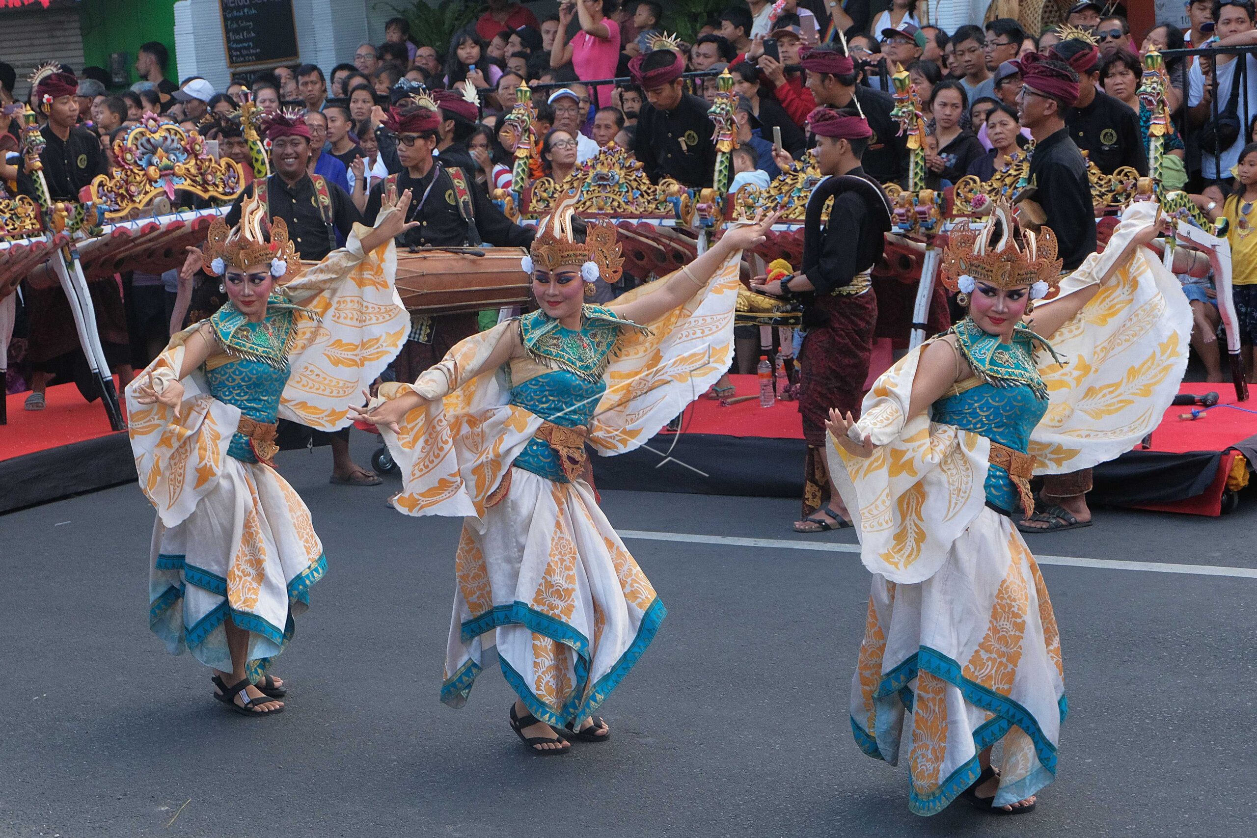 Revelers wear creative fashion during the 2019 Sanur Village Festival in Sanur, Denpasar, Bali, August 25, 2019. ANTARA FOTO/Nyoman Hendra Wibowo/ama/dw/nym.