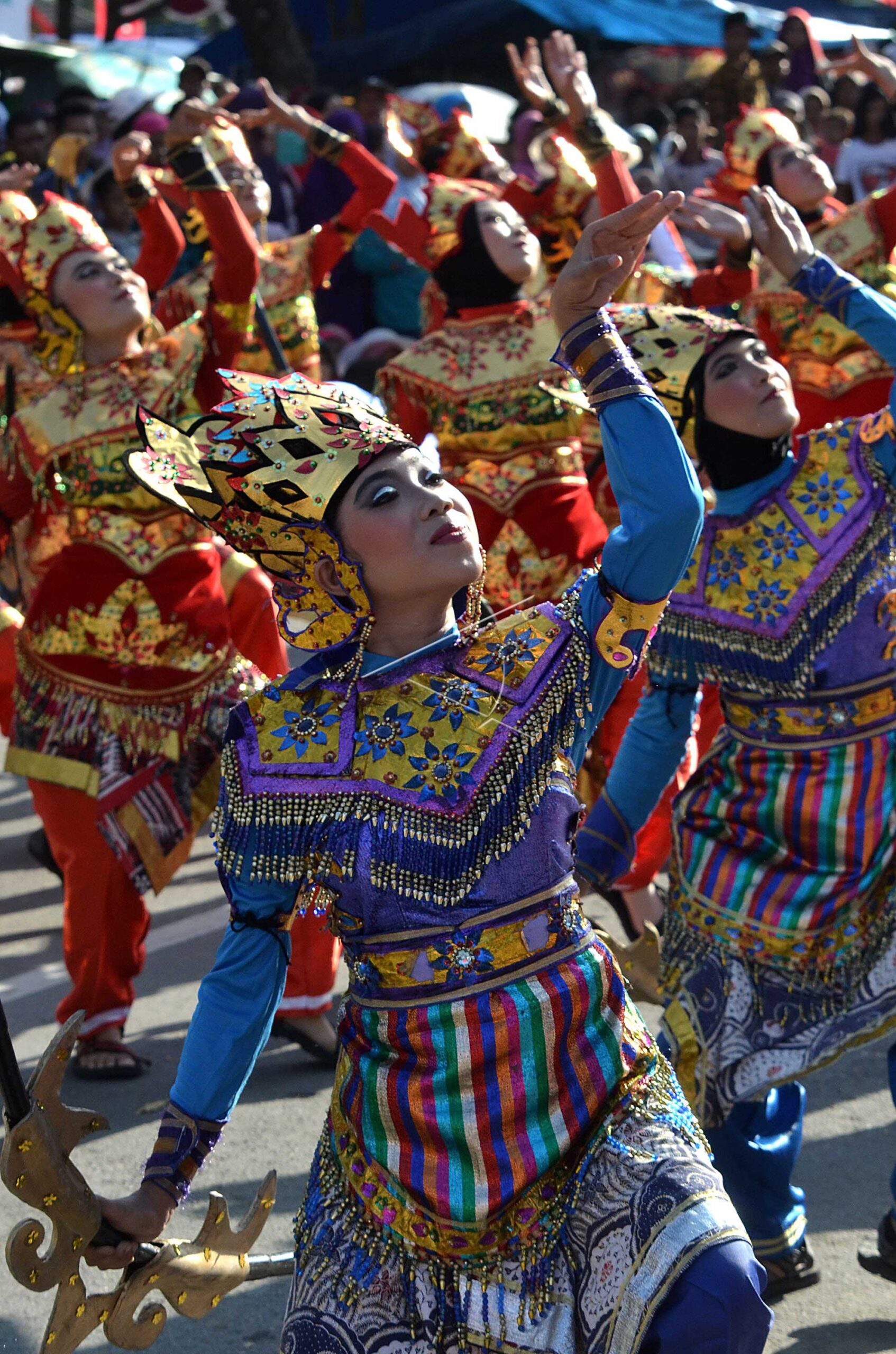 Participants perform a dance during a festival to celebrate the 658th anniversary of Ngawi Regency and the 71st Indonesian Independence Day at Ngawi Square, East Java, on August 18, 2016. ANTARA FOTO/Fikri Yusuf/foc/dw/nym.
