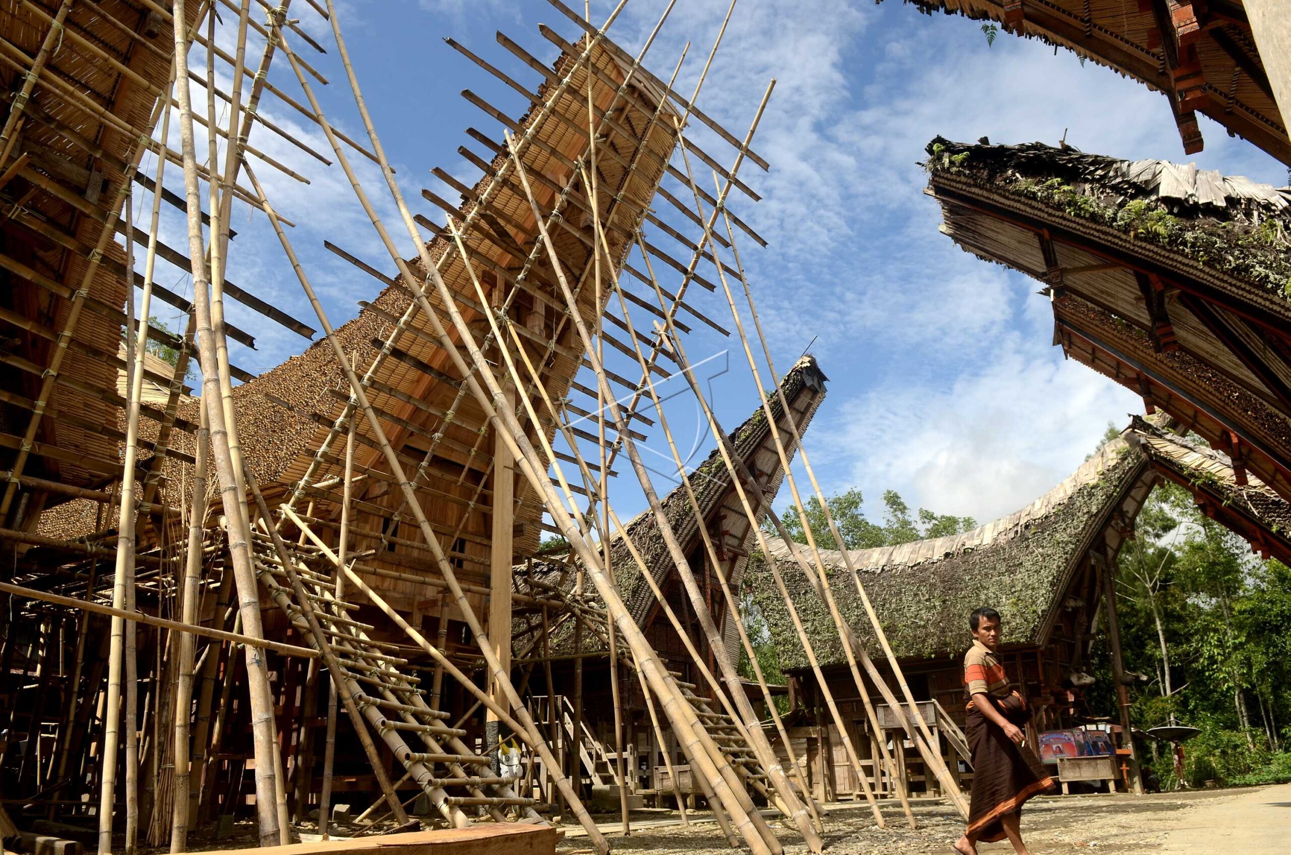 A man walks across a traditional house Tongkonan which is being restored in Pallawa, Saddan Regency, North Toraja, January 24, 2016. ANTARA FOTO/Sahrul Manda Tikupadang/foc/dw/nym.