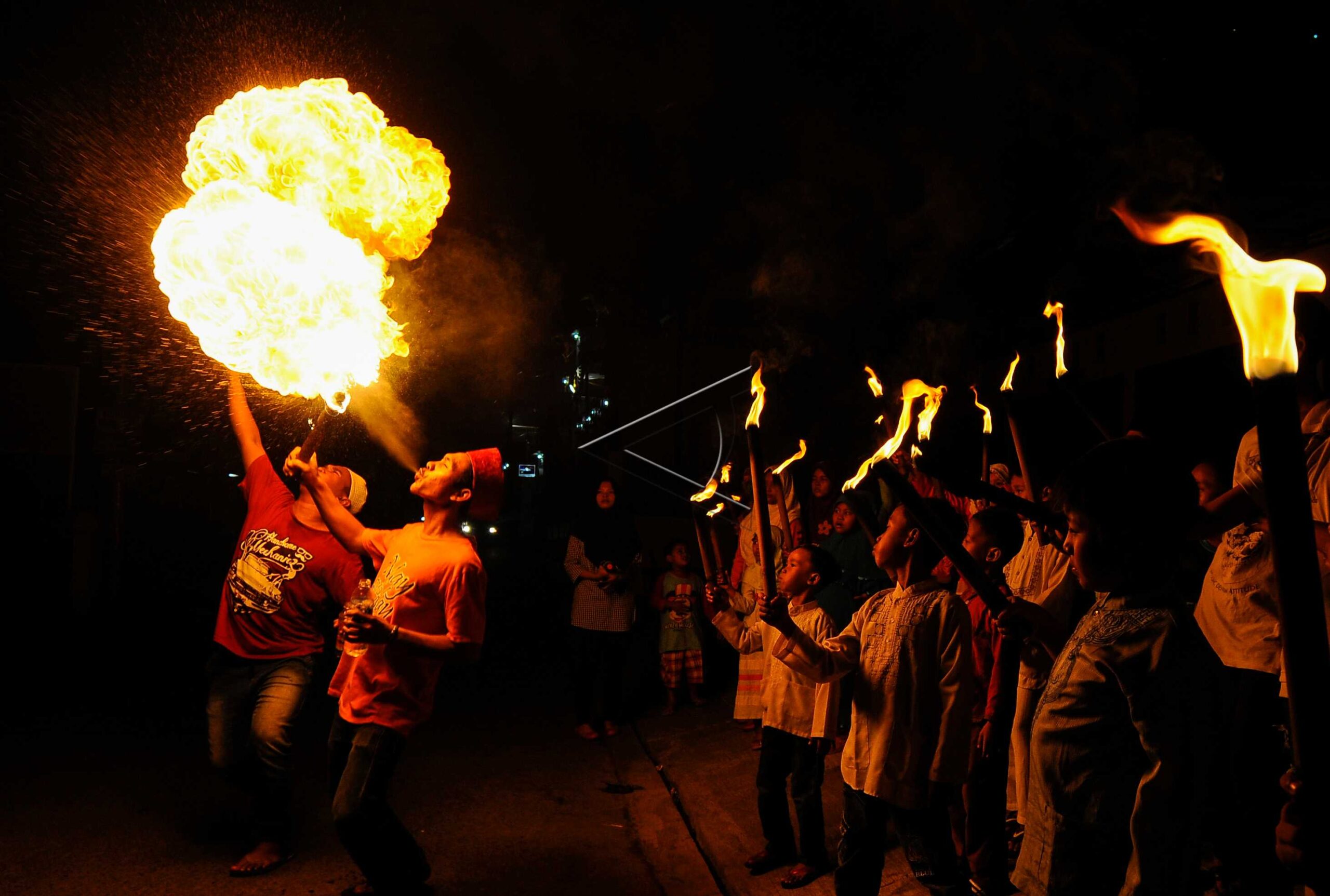 Children play with a torch while voicing Takbir to welcomed Eid Al-Fitr 1st Syawal 1437 H in Pengasinan, Bekasi, July 5, 2016. ANTARA FOTO/Paramayuda/aww/dw/nym.