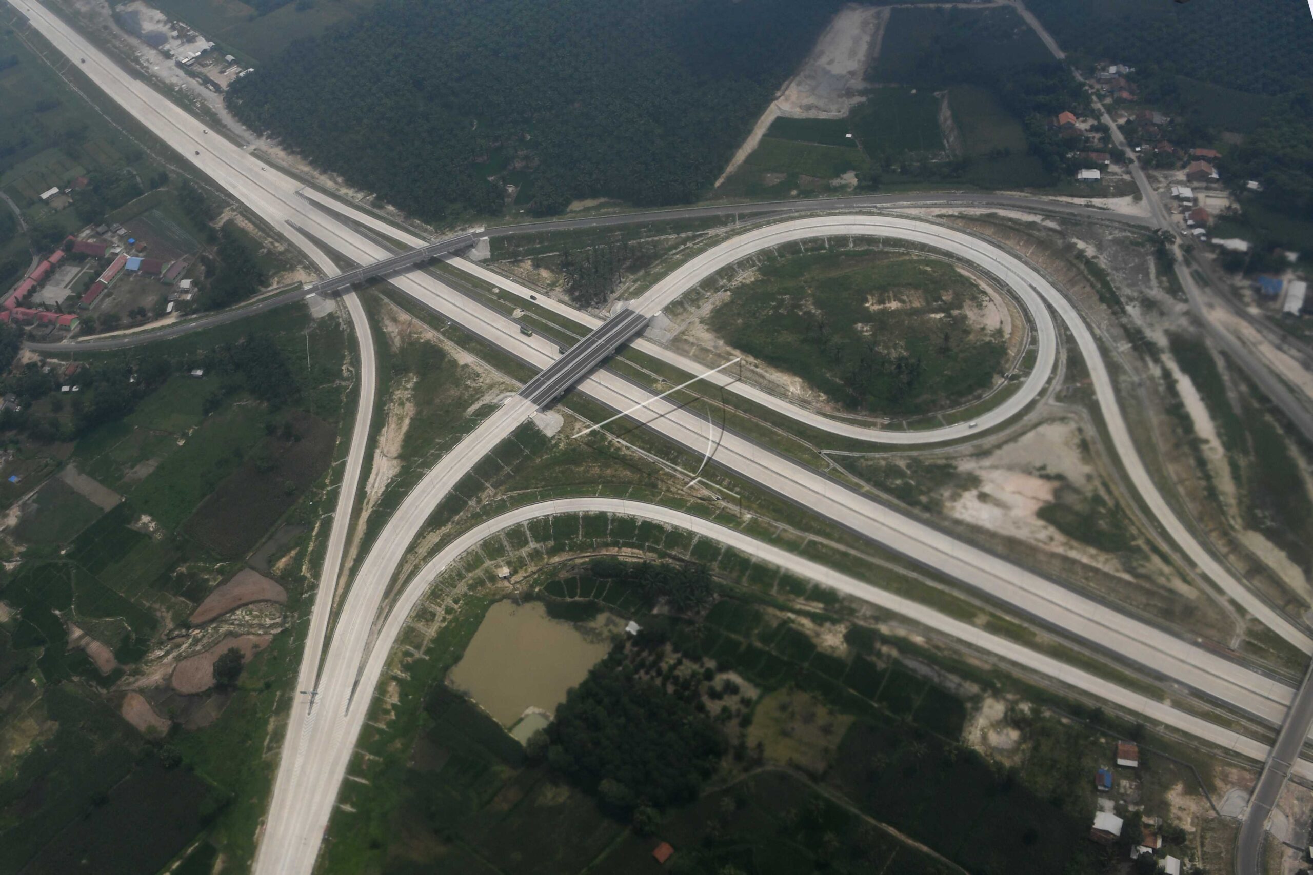 Aerial photo of the Trans Sumatera toll road section of Bakauheni-Terbanggi Besar which has been inaugurated by President Joko Widodo in Lampung, on Maret 9, 2019. ANTARA FOTO/Wahyu Putro A/hp/dw/sa.