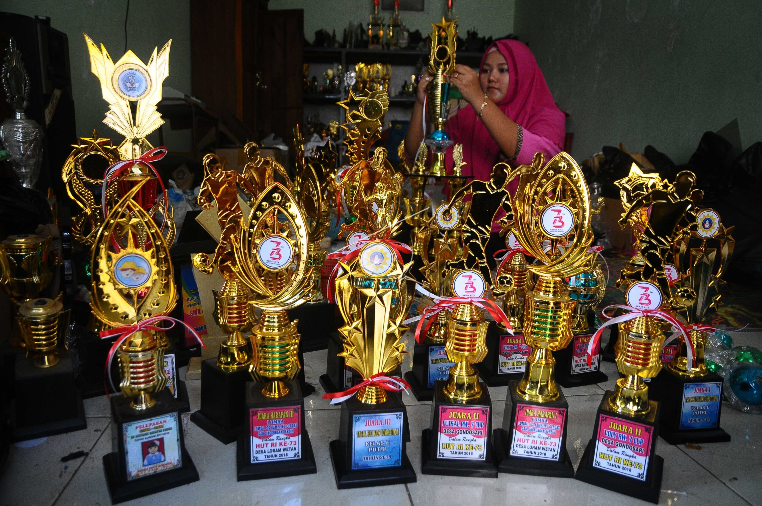 A craftsman makes trophies or trophies in Demaan Village, Kudus, Central Java, August 15, 2018. ANTARA FOTO/Yusuf Nugroho/dw/wpa/sa.