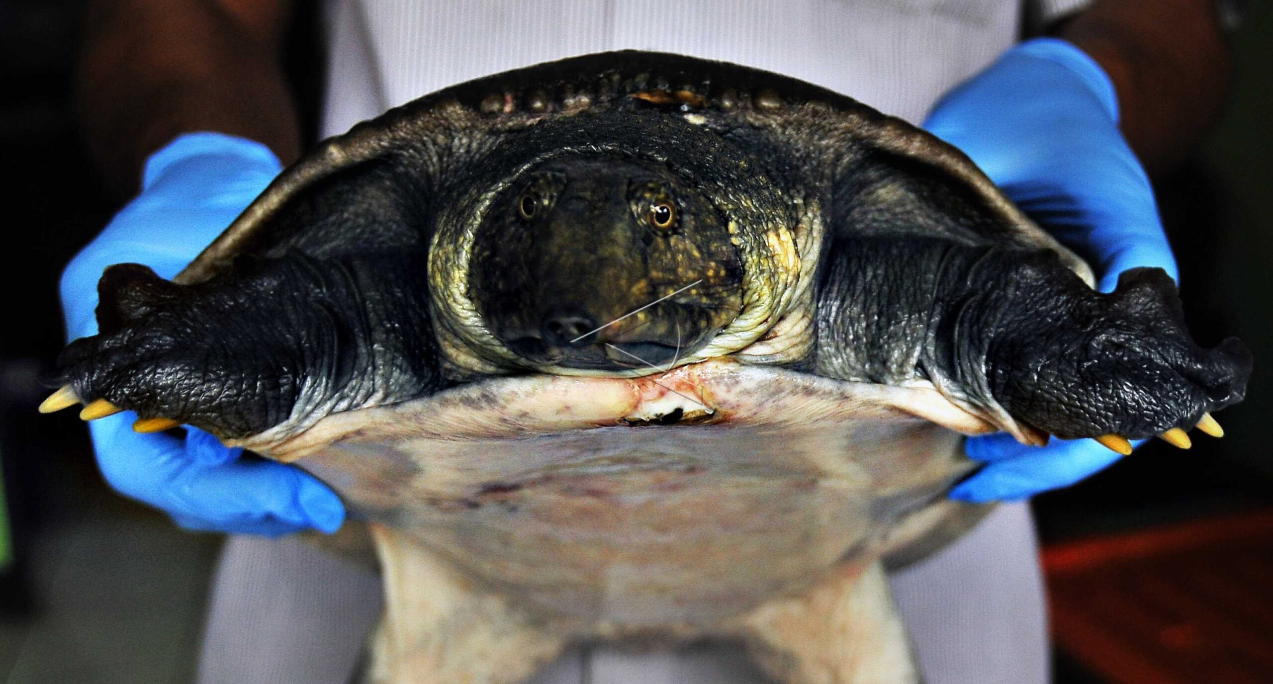 A bulus or turtle (Amyda cartilaginea) at Banten BKSDA (Natural Resources Conservation Center) Office, November 9, 2018. ANTARA FOTO/Asep Fathulrahman/dw/pras/sa.