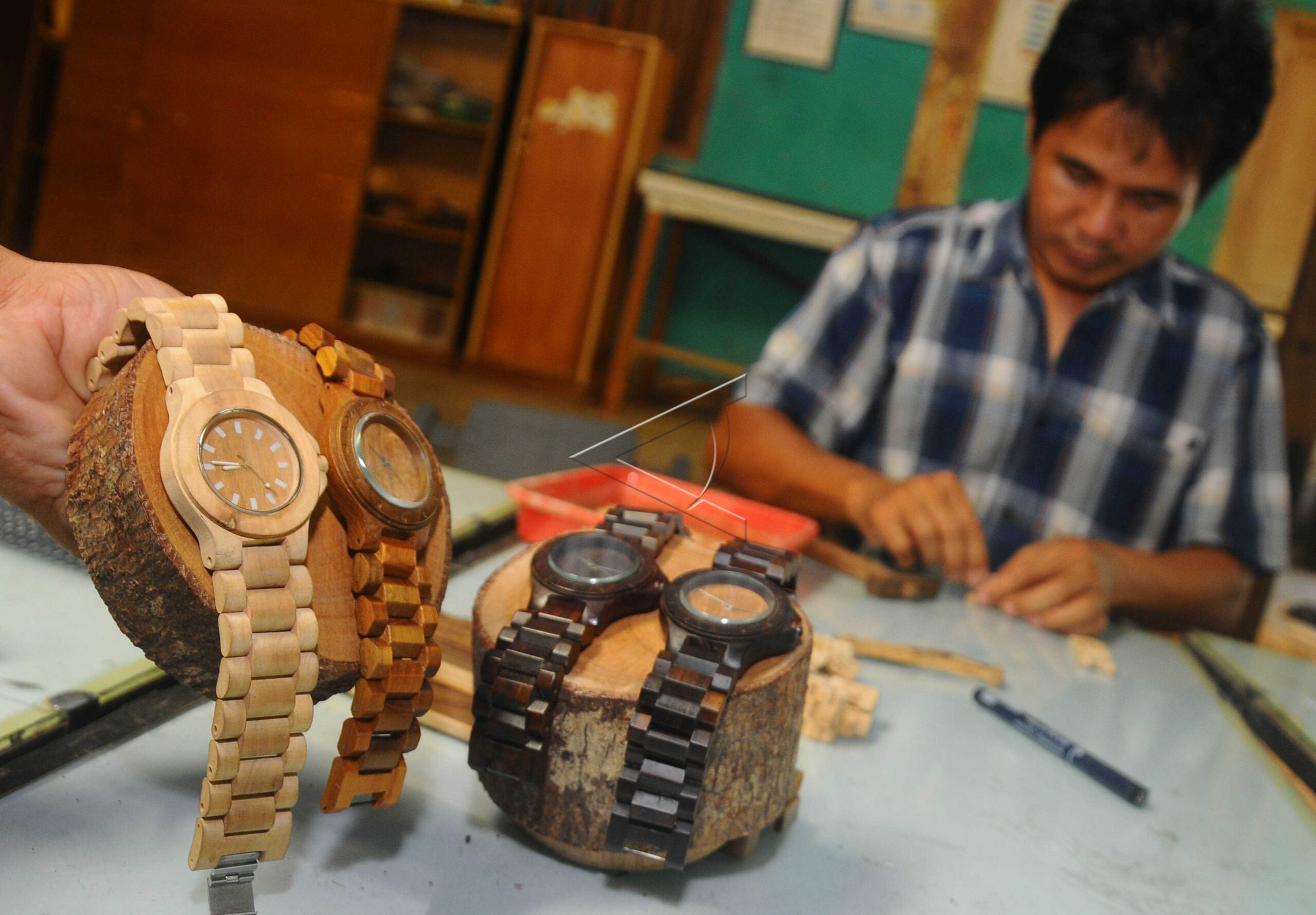 A crafter finishs making watches made from wood, in Pereng, Klaten, Central Java, January 14, 2016. ANTARA FOTO/ Aloysius Jarot Nugroho/dw/tom/sa.