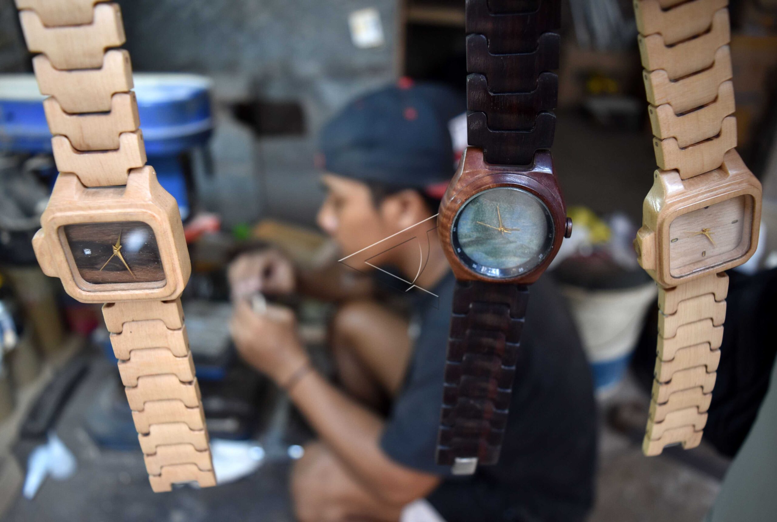 A crafter makes wooden watches made from maple wood at the home industry Nowis Handmade, Gemah, Semarang, Central Java. , July 2, 2018. ANTARA FOTO/Aditya Pradana Putra/dw/wpa/sa.