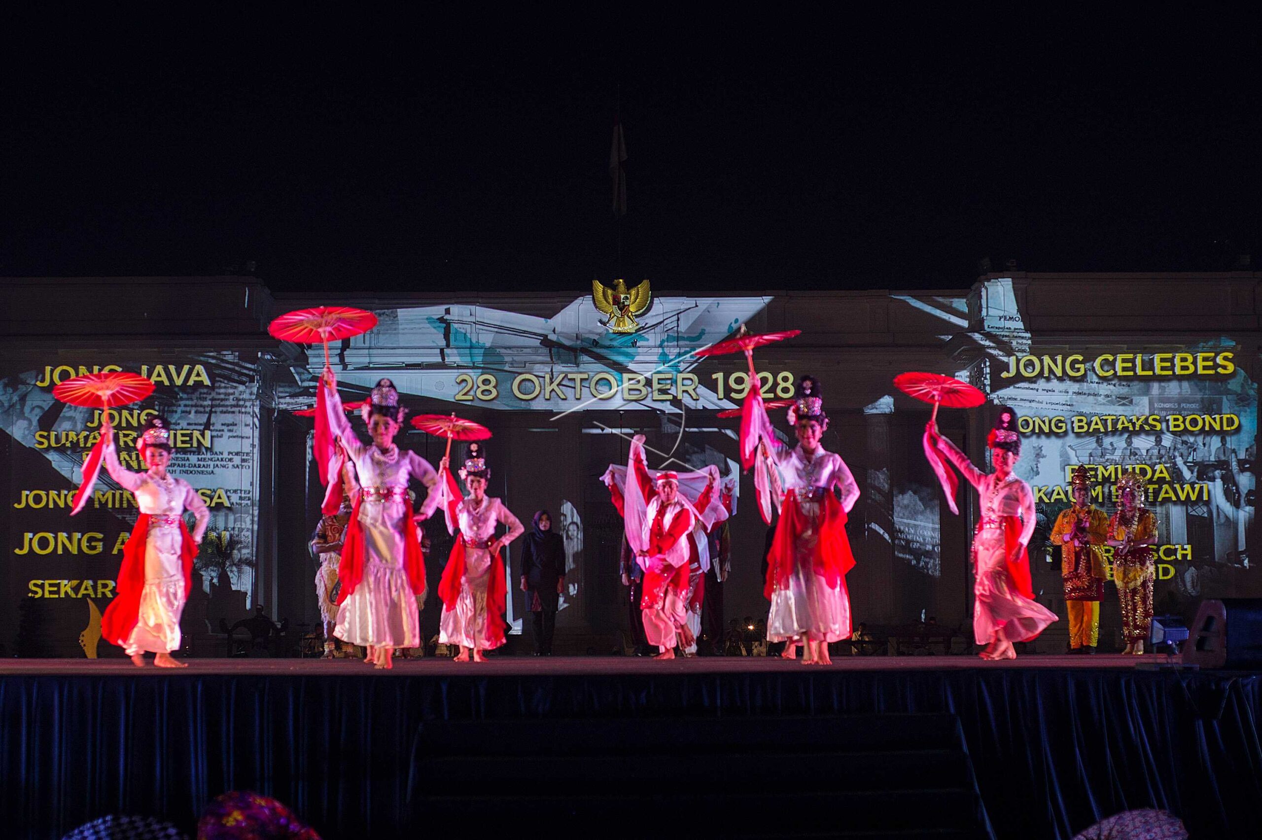 Dancers perform during the commemoration of Youth Pledge Day October 28 entitled Nusantara Berdendang at Merdeka Palace compound in Jakarta, October 28, 2016. ANTARA FOTO/Widodo S. Jusuf/ama/dw/nym.
