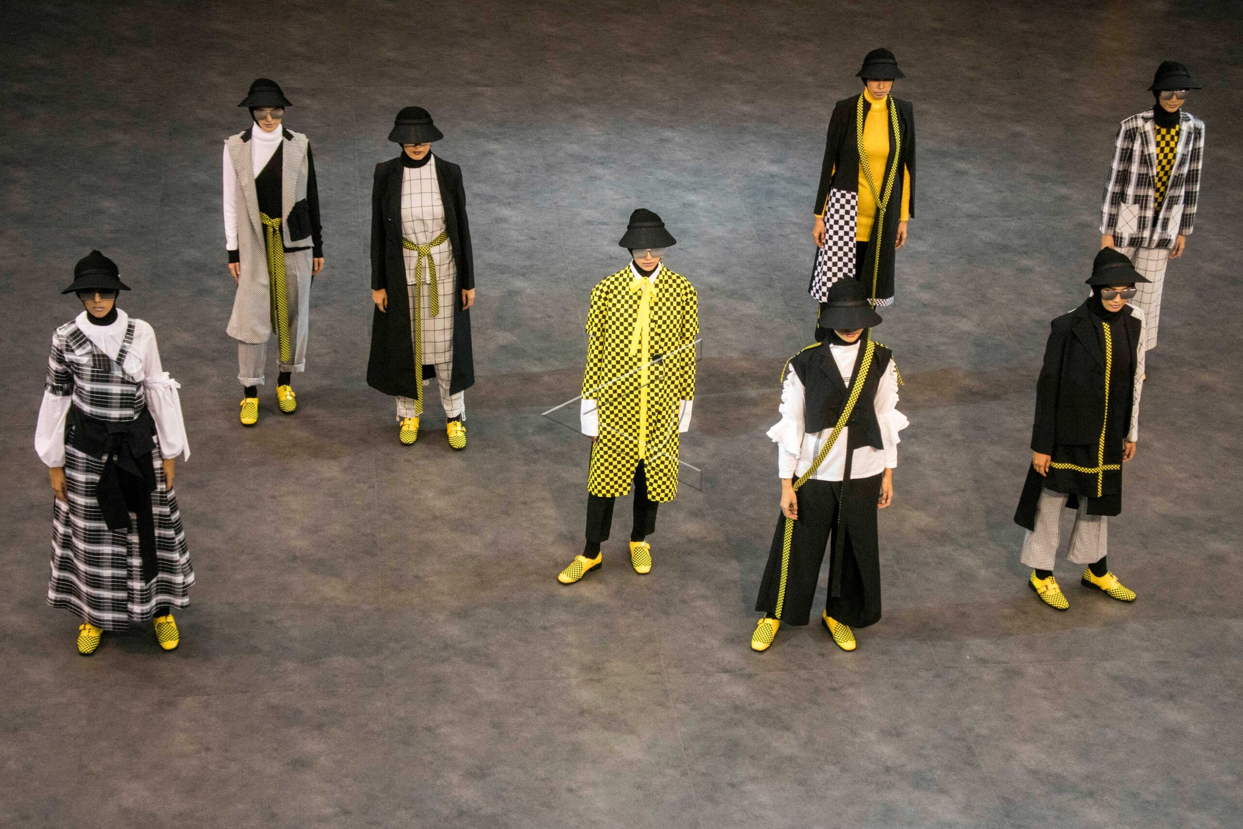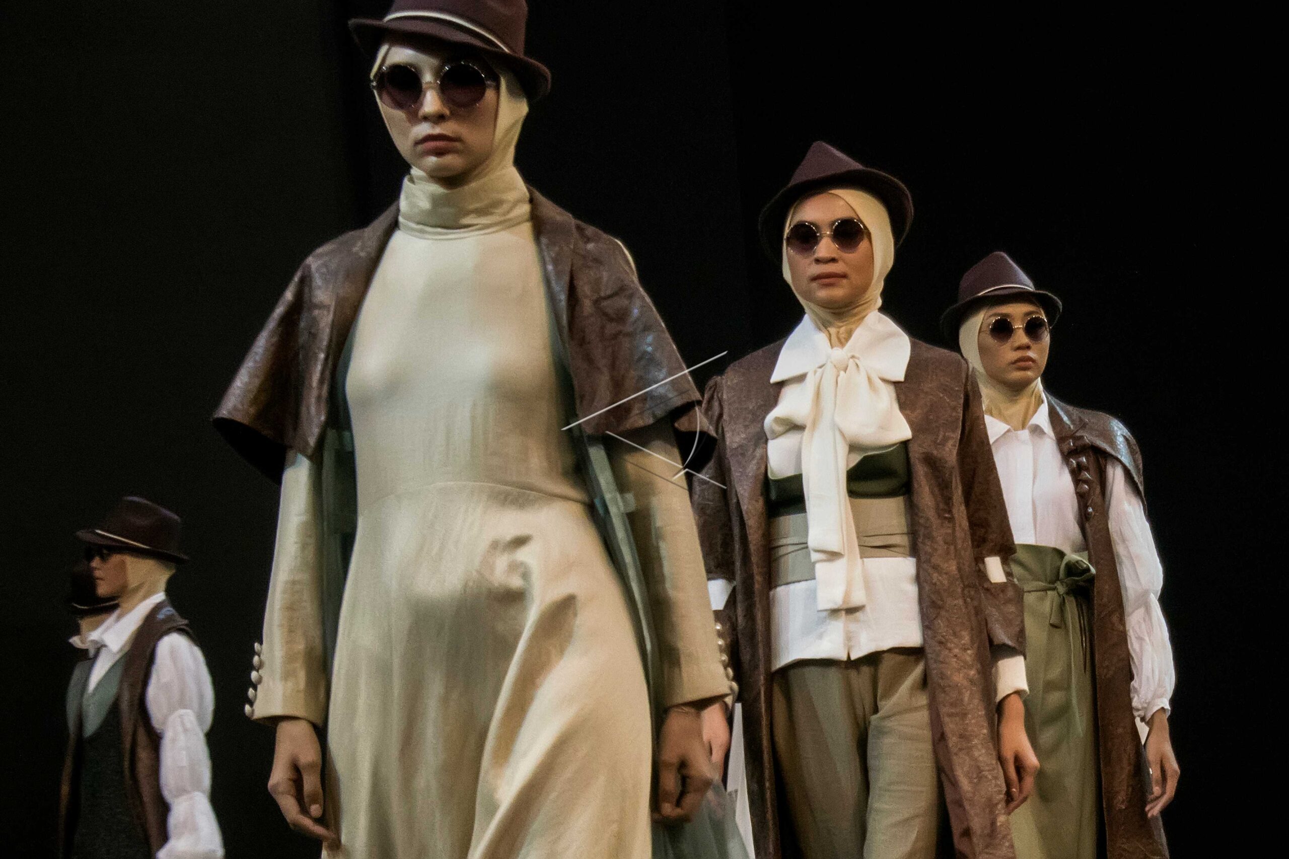 Sejumlah model memperagakan busana karya Lisa Fitria ‘Intersezione’ pada acara #23 Fashion District di 23 Paskal Shopping Centre, Bandung, Jawa Barat, Minggu (9/9/2018). ANTARA FOTO//Novrian Arbi/kye/dw/18