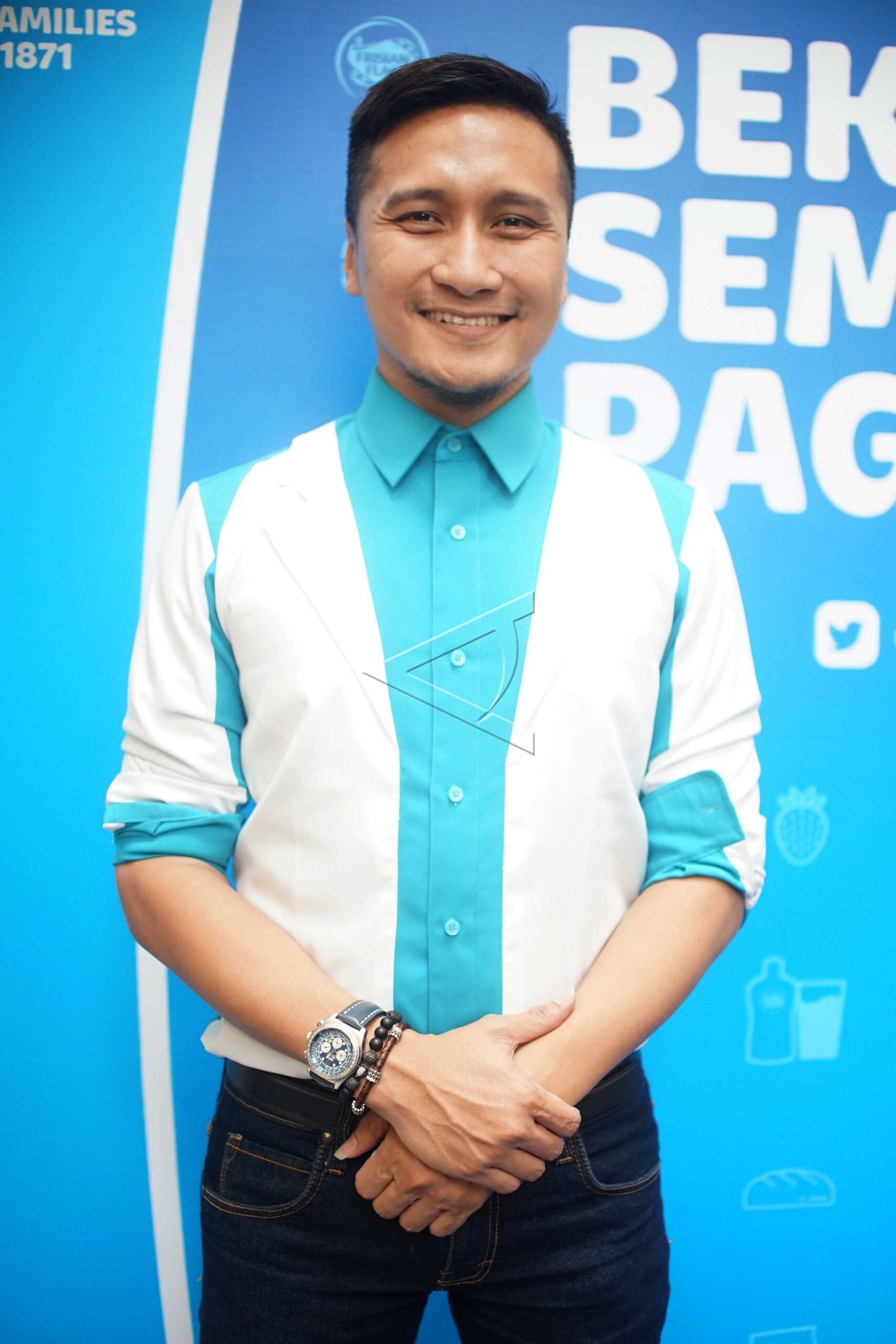 Selebriti Arie Untung berpose usai konferensi pers sebuah produk di Senayan, Jakarta, Rabu (24/2/2016). ANTARA FOTO/Gohitzz/Anggit Benardi/dw/nym.