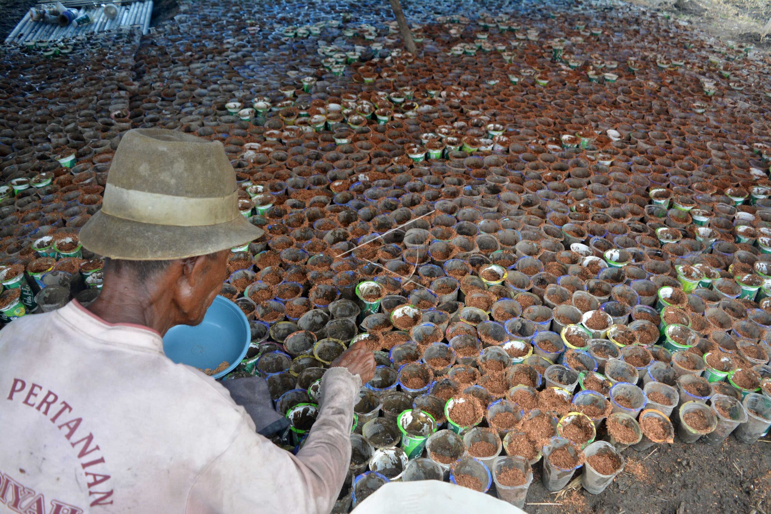 Petani menyiapkan bibit timun suri yaitu tanaman buah yang dapat dipanen dalam jangka waktu pendek atau sekitar dua bulan di persawahan kawasan Wonoayu, Sidoarjo, Jawa Timur, Sabtu (9/4/2016). ANTARA FOTO/Umarul Faruq/dw/nym.