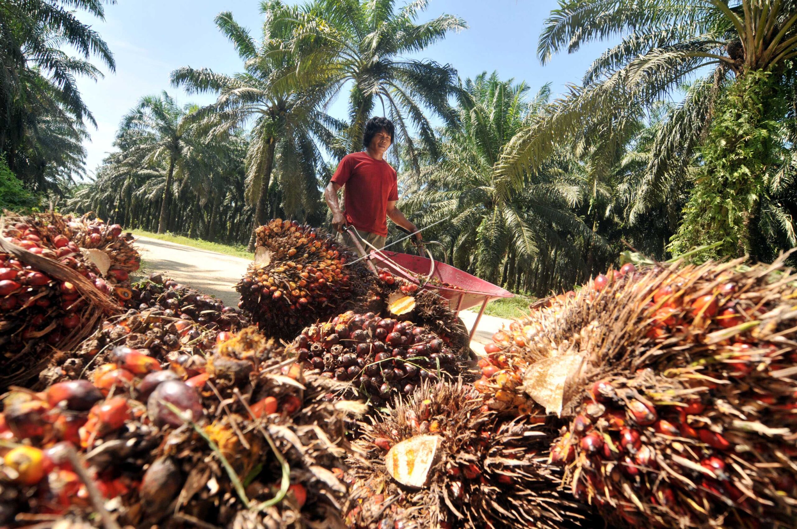 Seorang pekerja mengumpulkan buah kelapa sawit untuk diangkut ke pabrikan pengolahan CPO (Crude Palm Oil) di areal perkebunan Pasangkayu, Sulawesi Barat, Kamis (27/12/2012). ANTARA FOTO/Basri Marzuki.