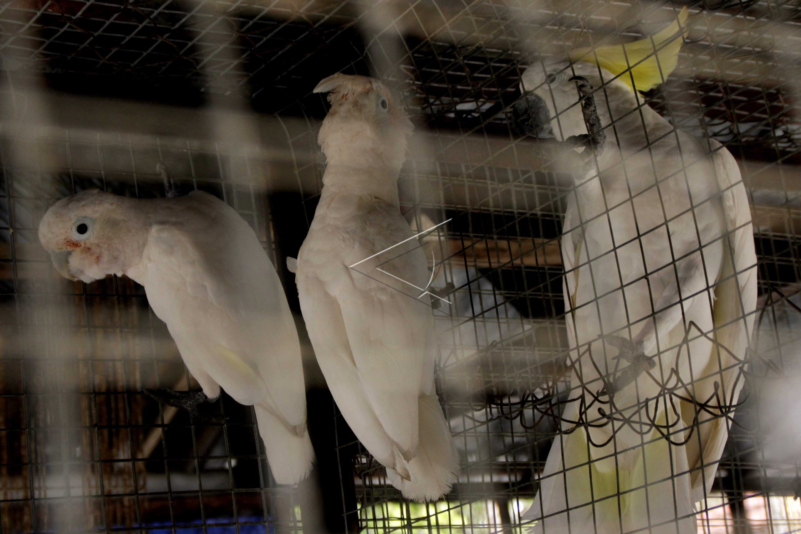 Dua ekor kakatua maluku (Cacatua moluccensis) dan seekor kakatua jambul kuning (Cacatua sulphurea) berada di dalam kandang, di Kantor Balai Besar Konservasi Sumber Daya Alam (BBKSDA) NTT Kupang, Nusa Tenggara Timur, Jumat (1/3/2019). ANTARA FOTO/Kornelis Kaha/dw/tom.