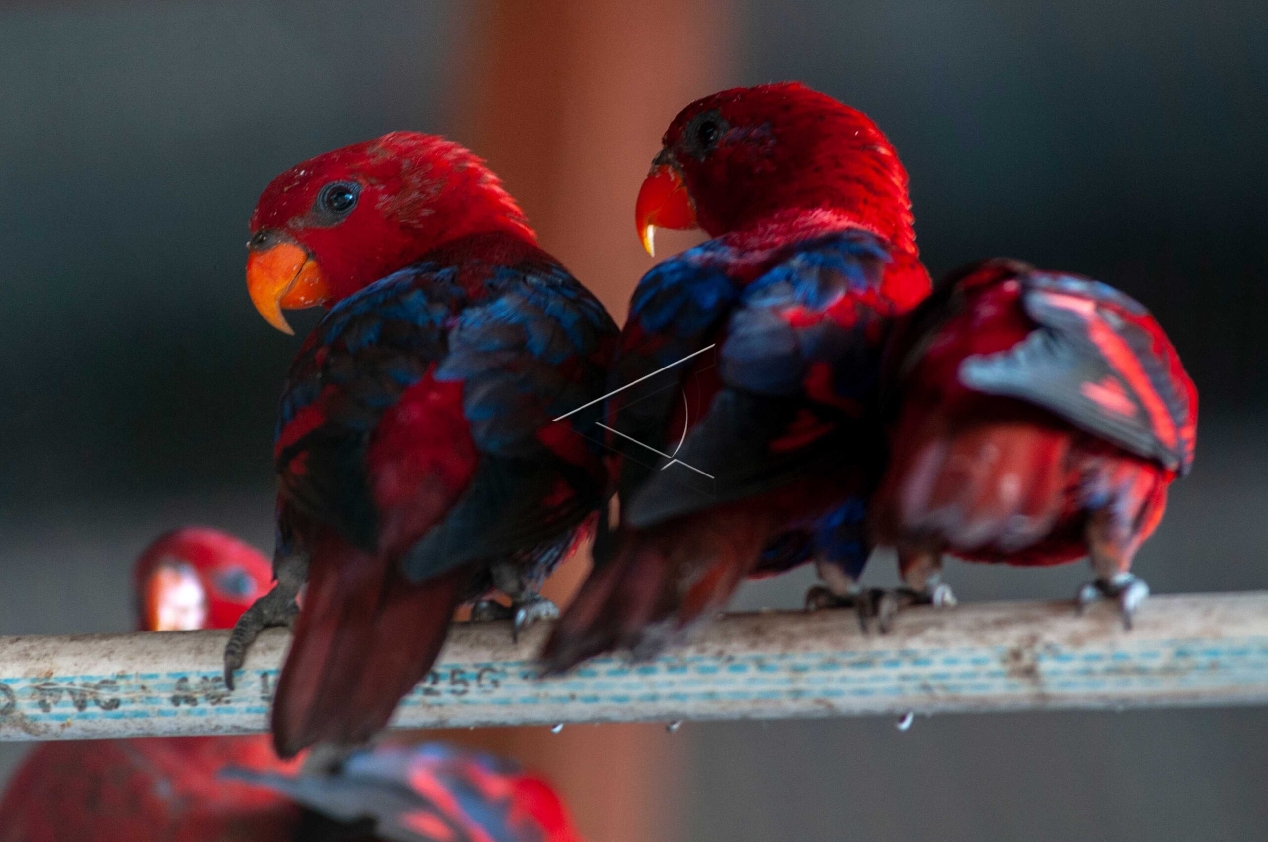 Beberapa burung nuri merah atau red lory (Eos bornea) hasil sitaan berada di dalam kandang Balai Konservasi Sumber Daya Alam (BKSDA), di Palu, Sulawesi Tengah, Kamis (1/8/2019). ANTARA FOTO/Basri Marzuki/dw/tom.