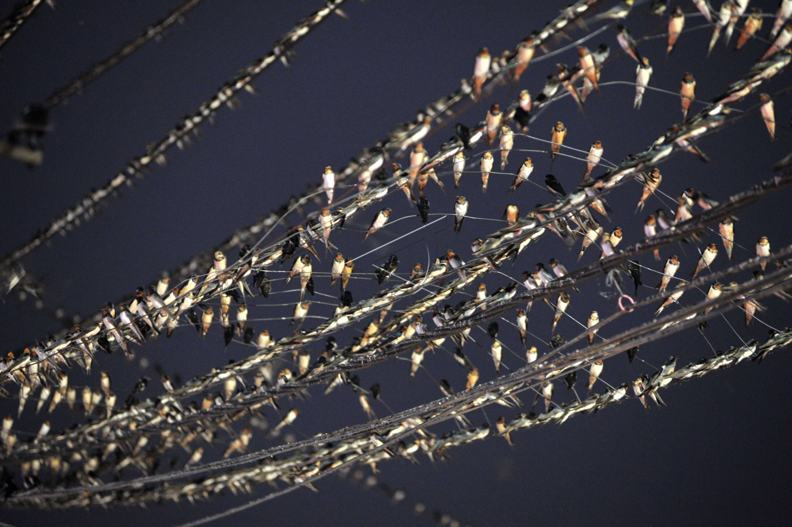 Burung walet bertengger pada beberapa untai kabel di kawasan Pasar Jambi, Jambi, Rabu (23/10/2019). ANTARA FOTO/Wahdi Septiawan/dw/tom.