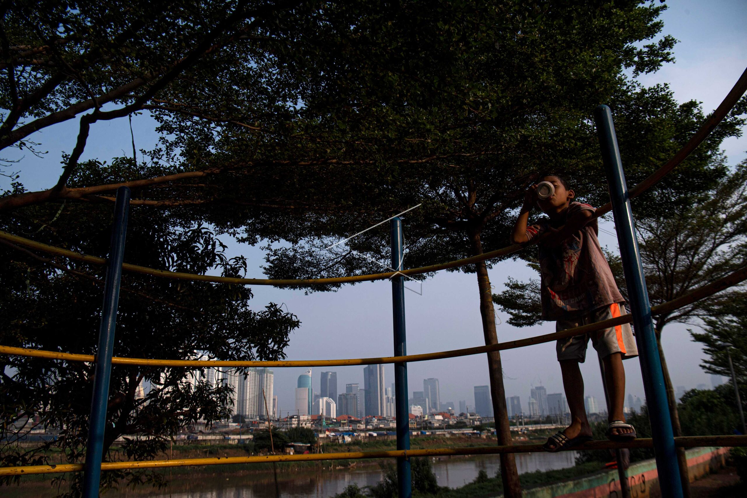 Sejumlah warga beraktivitas di pinggir Sungai Ciliwung, Kanal Banjir Barat, Jakarta, Minggu (19/4/2020). IMF memperkirakan pertumbuhan ekonomi Indonesia 2020 hanya 0,5 persen sebagai imbas dari pandemi COVID-19, tapi pada 2021 diperkirakan akan bangkit dengan tingkat pertumbuhan mencapai 8,2 persen. ANTARA FOTO/Sigid Kurniawan/aww.