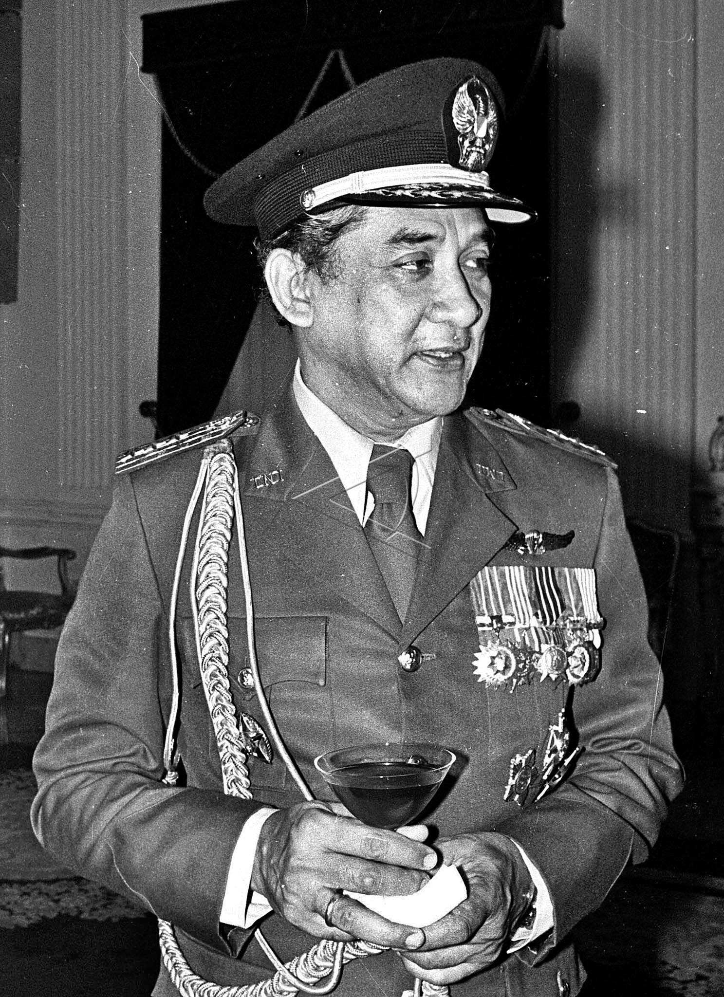 Letjen TNI Tjokropranolo saat dilantik sebagai Gubernur DKI Jakarta menggantikan Letjen Marinir Ali Sadikin melalui surat keputusan presiden tertanggal 15 Juni1977, di Jakarta (20/6/1977). ANTARA FOTO/../Koz/hp/asf/tom.