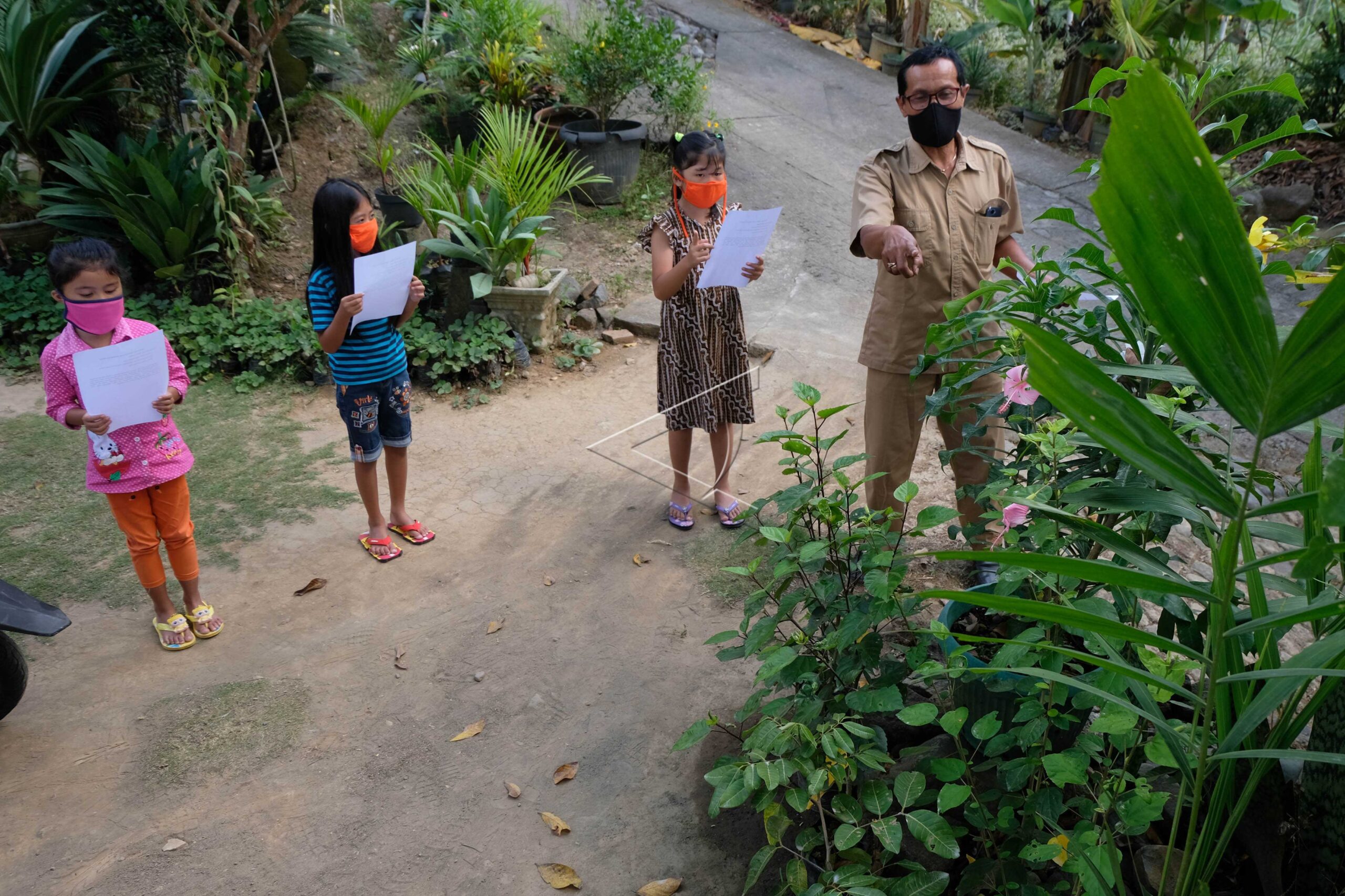 Guru SD Kanisius Kenalan Henricus Suroto (kanan) mengajar muridnya di halaman rumah warga di kawasan pegunungan Menoreh, Dusun Plengan, Banjaroyo, Kalibawang, Kulonprogo, DI Yogyakarta, Senin (20/7/2020). Sejak pandemi COVID-19 empat bulan lalu Henricus mengajar murid-muridnya dengan mendatangi dari rumah ke rumah karena terkendala sinyal internet di wilayah tersebut dan sebagian warganya tidak mempunyai gawai untuk […]