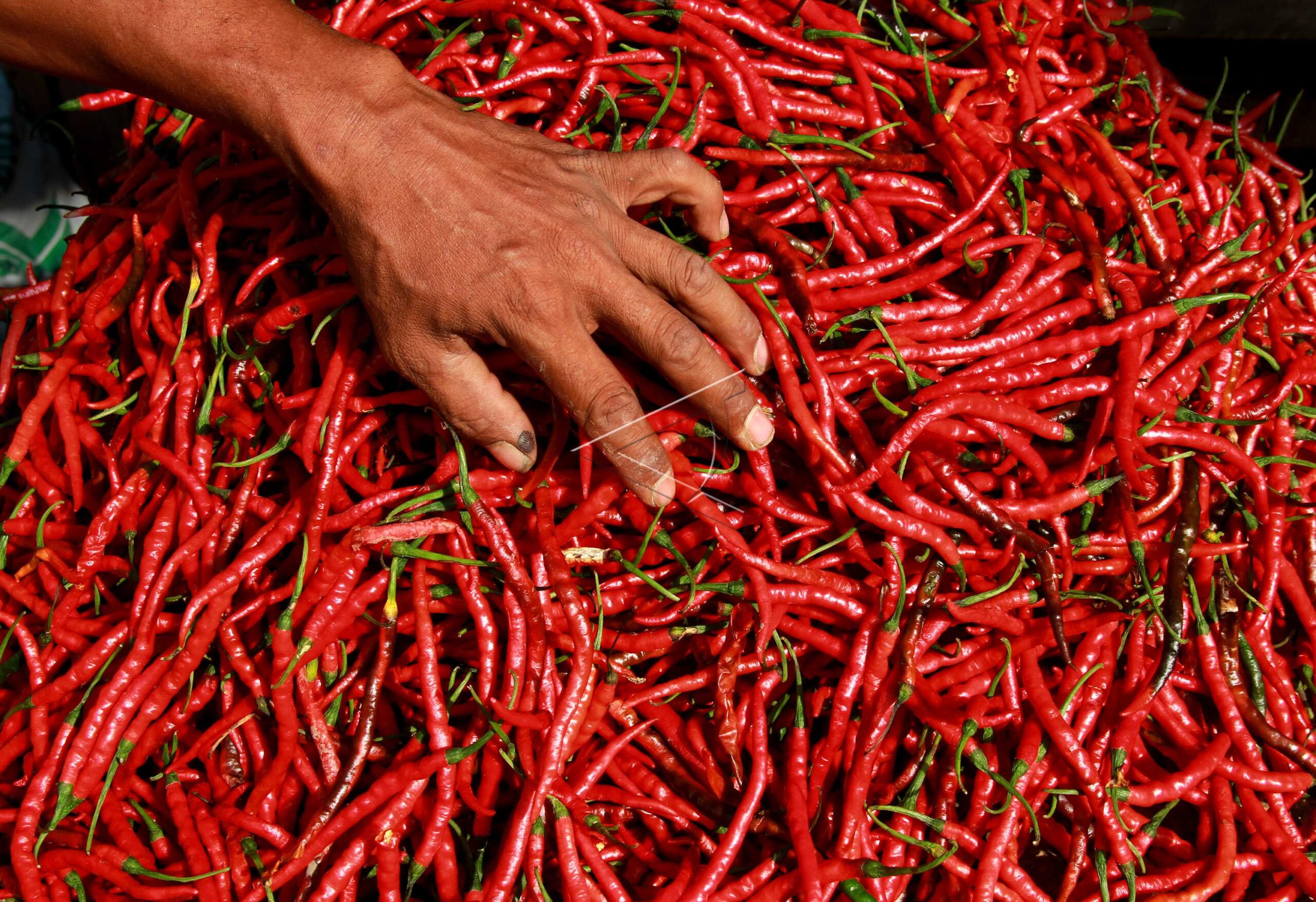 Seorang pembeli memilih cabai merah keriting menjelang bulan Ramadan di pasar tradisional di Mamuju, Sulawesi Barat, Rabu (24/5/2017). ANTARA FOTO/Akbar Tado/kye/dw/17.