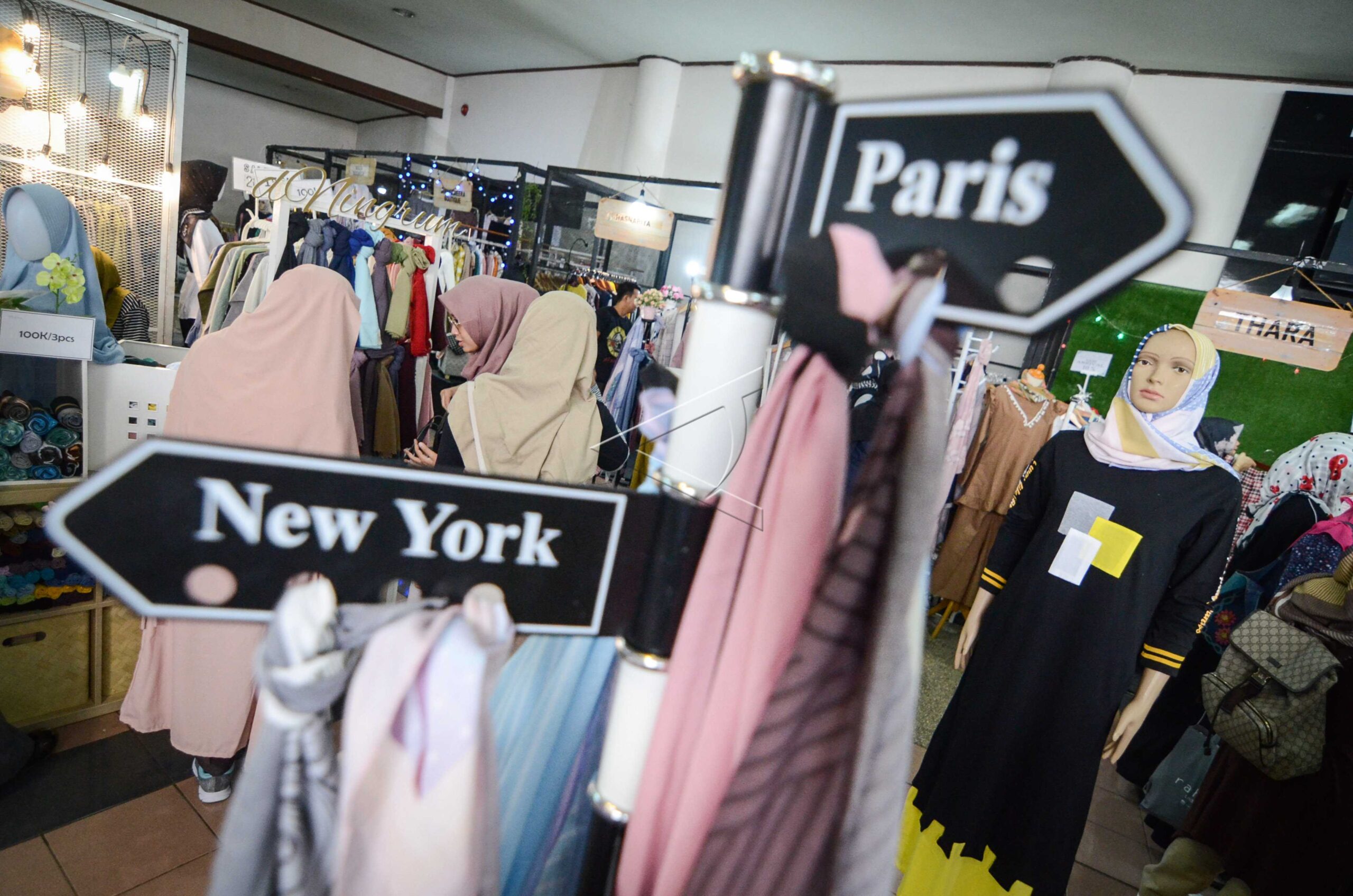 Pengunjung memilih ragam jenis kerudung saat acara Hijab Market Festival di Sasana Budaya Ganesha (Sabuga), Bandung, Jawa Barat, Rabu (5/9/2018). ANTARA FOTO/Raisan Al Farisi/aww/dw/18.