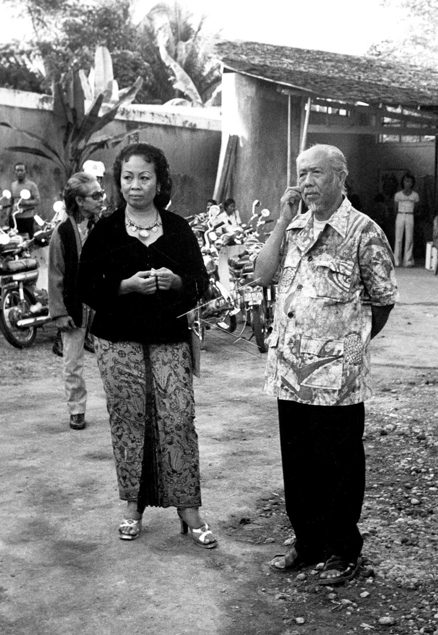 Pelukis Affandi (kanan) didampingi putrinya Kartika pada peringatan ulang tahunnya yang ke-70, di Yogyakarta, Kamis (12/5/1977). ANTARA FOTO/Yogyakarta/hp/asf/nym.
