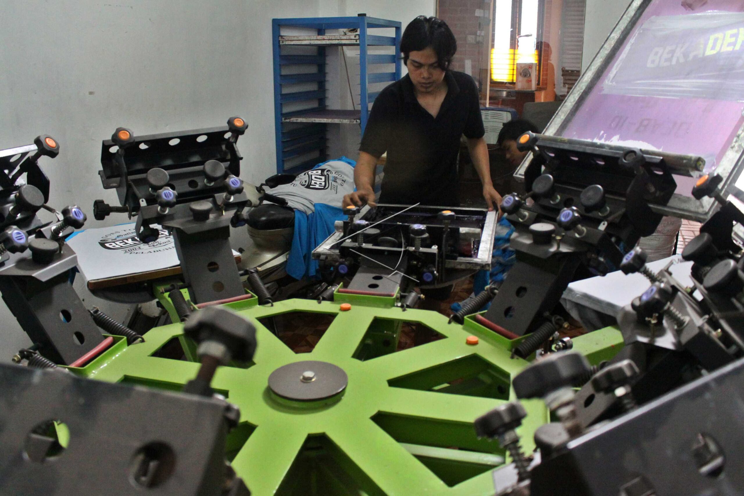 Pekerja menyablon kaos di sebuah UMKM di Bekasi, Jawa Barat, Rabu (13/1/2016). ANTARA FOTO/Risky Andrianto/dw/tom.