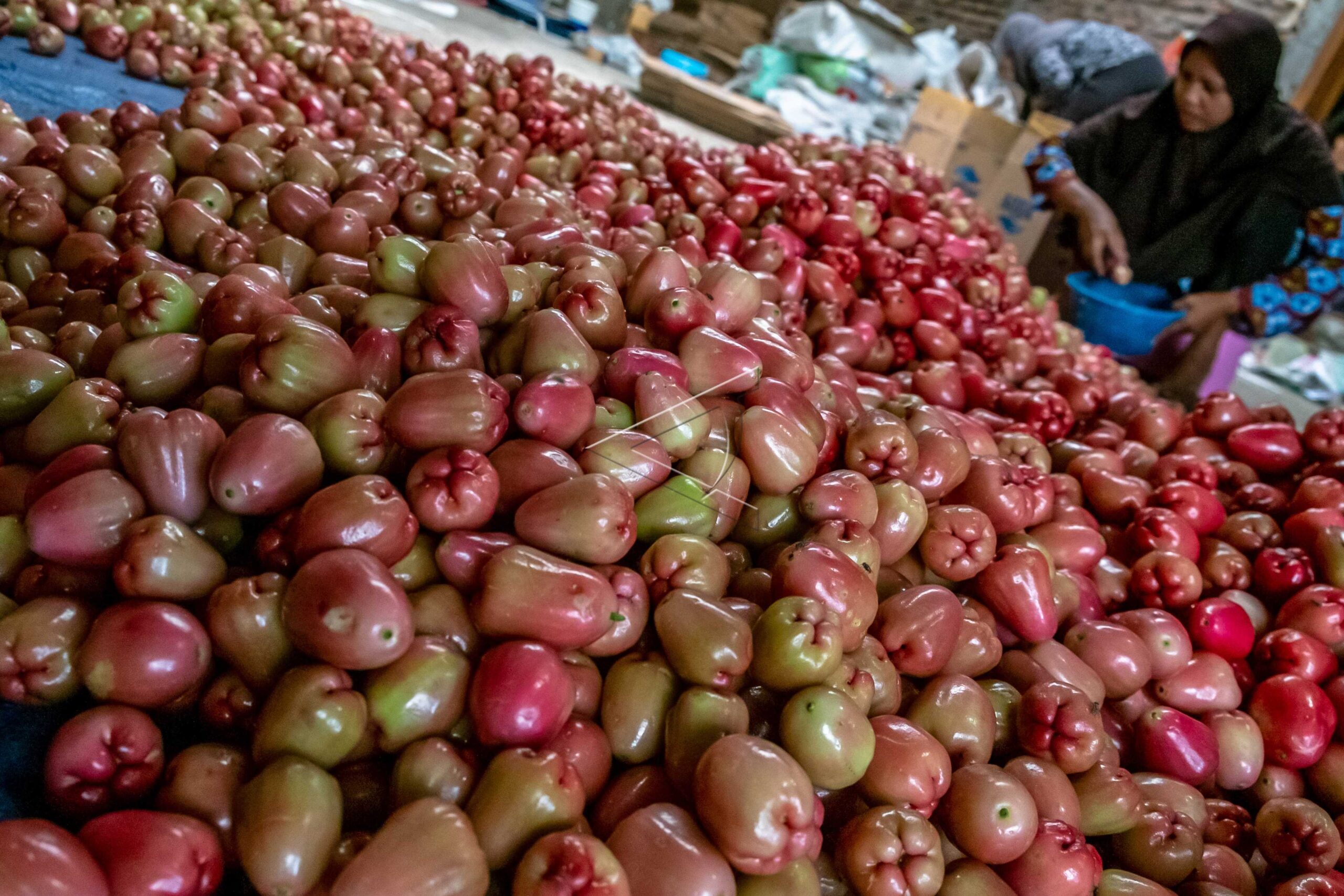 Pekerja menyortir jambu air jenis merah delima di Desa Sidomulyo, Wonosalam, Demak, Jawa Tengah, Kamis (29/11/2018). ANTARA FOTO/Aji Styawan/dw/pras.