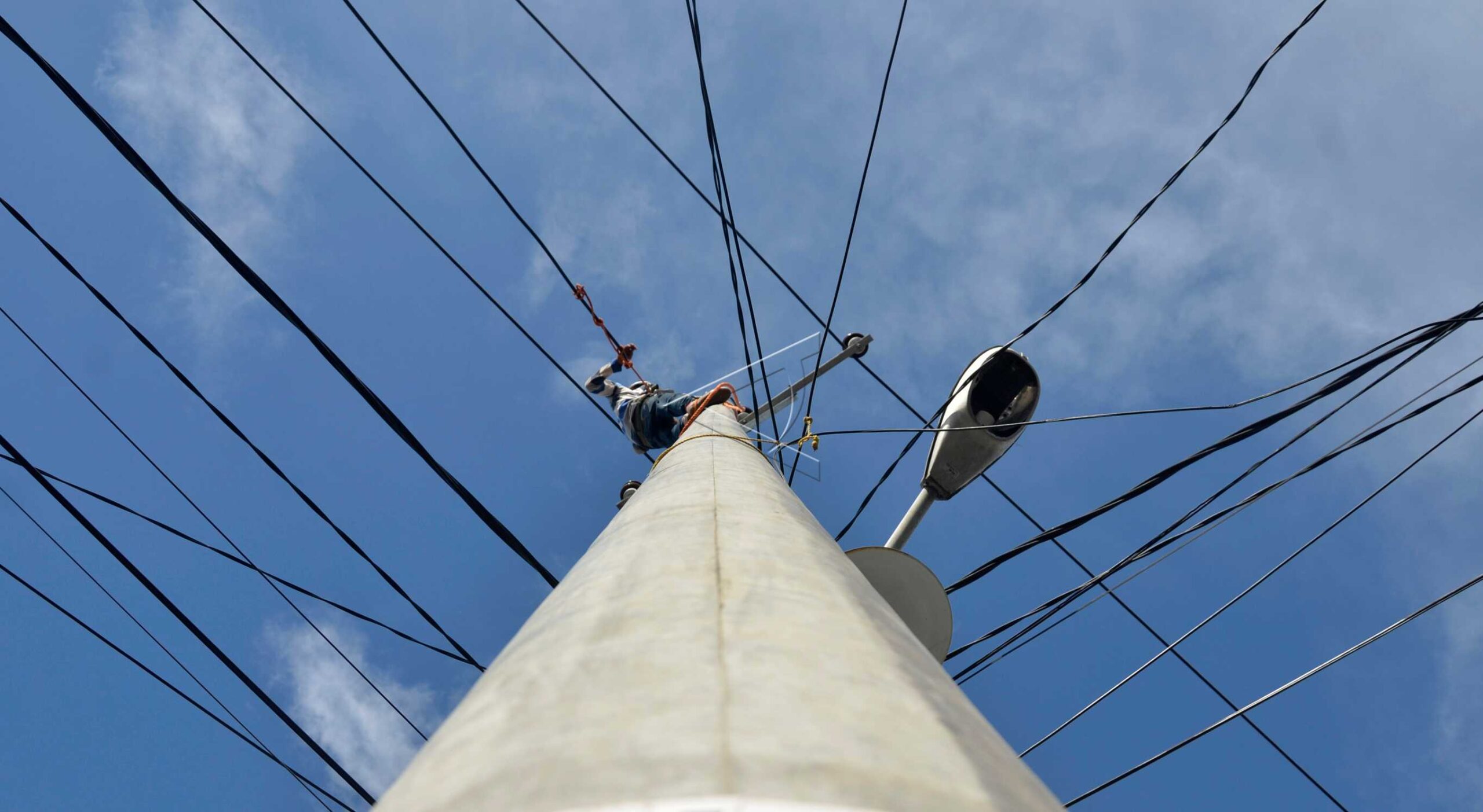 Seorang teknisi PLN mengecek kabel di jalan Monginsidi Baru Makassar, Sulawesi Selatan, Jumat, (30/9/2016). ANTARA FOTO/Darwin Fatir/dw/pras.