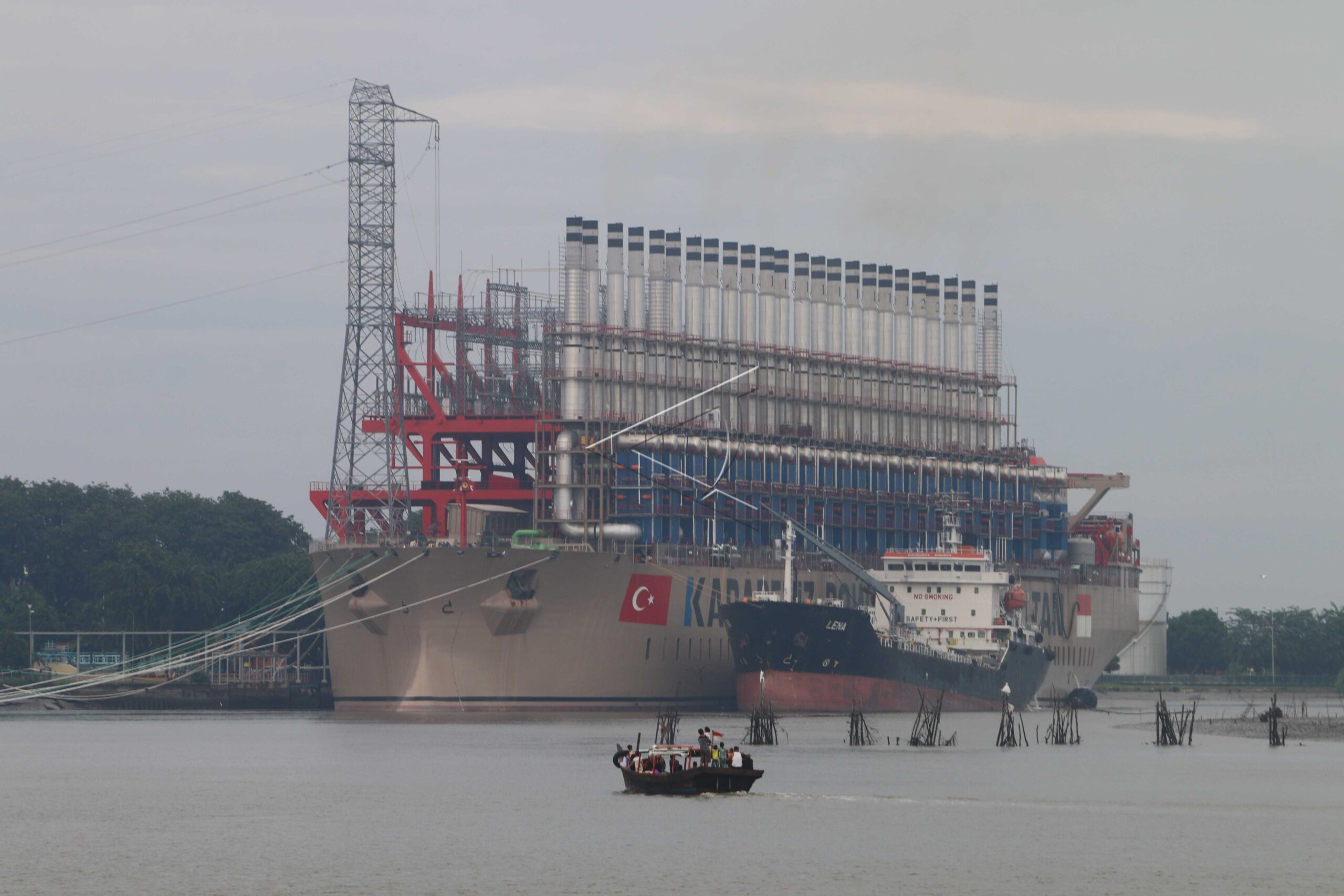 Kapal pembangkit listrik yang disewa PT PLN dari Turki dengan panjang 300 meter dan lebar 46 meter berlabuh di Belawan, Medan, Sumatera Utara, Minggu (3/12/2017). ANTARA FOTO/Irsan Mulyadi/dw/pras.