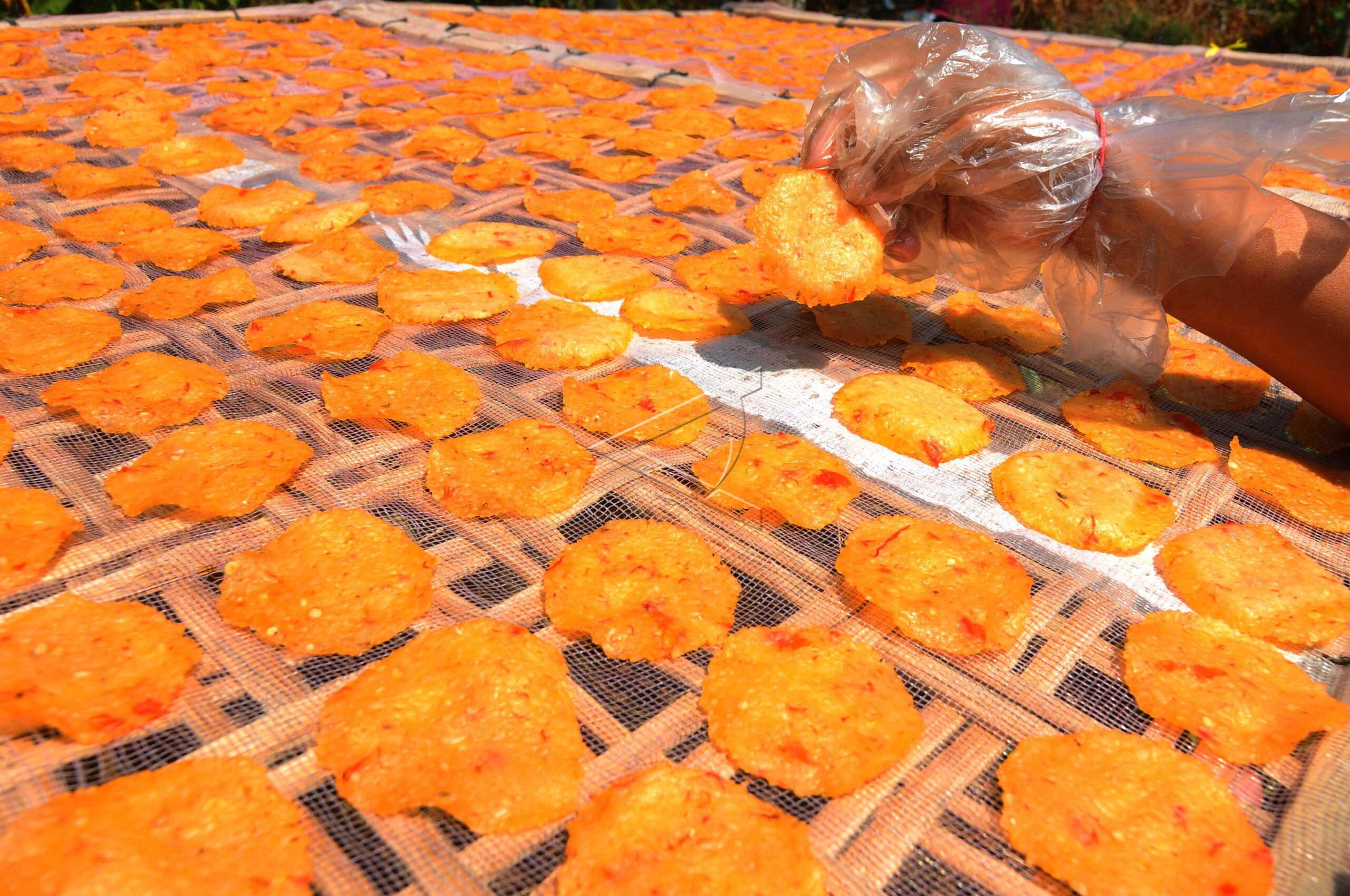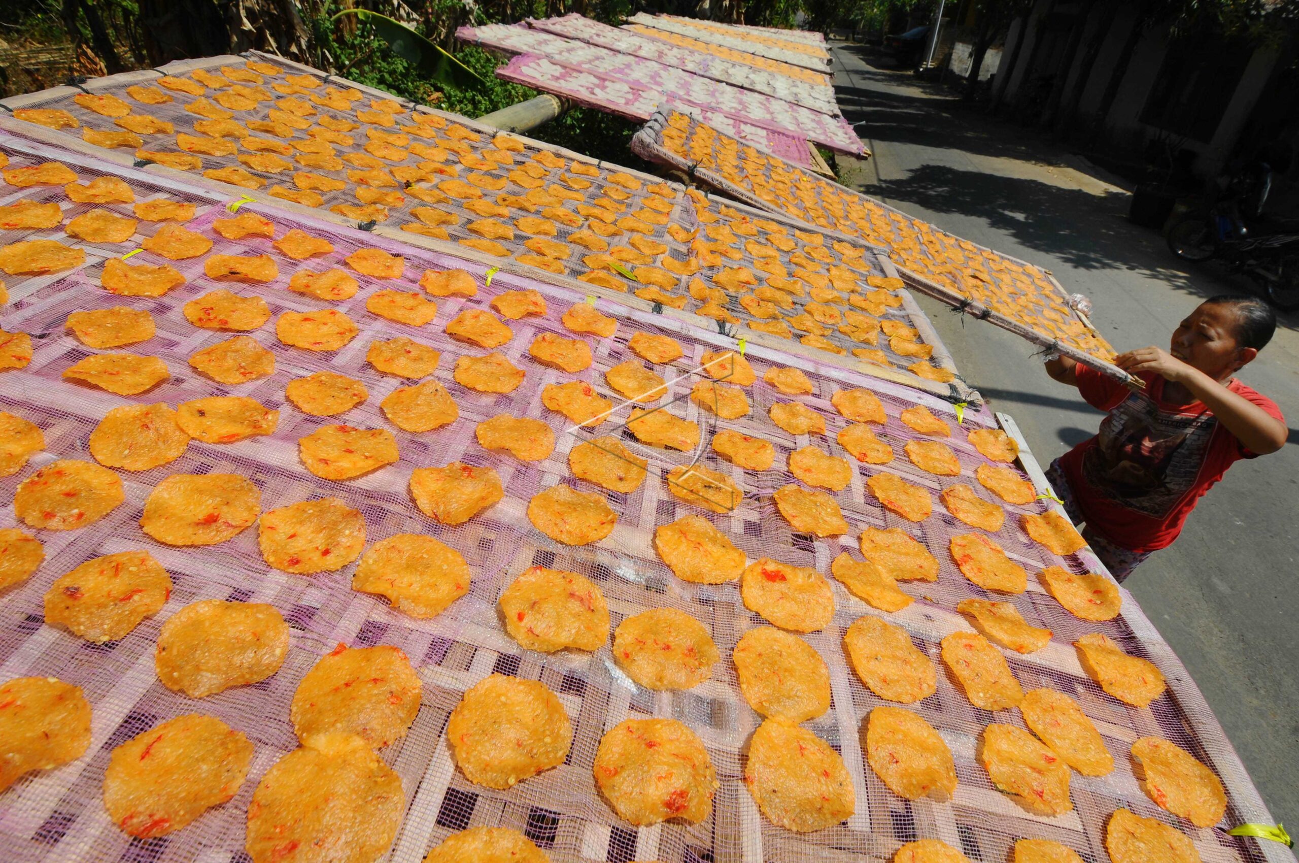 Pekerja menjemur adonan karak di Tawangsari, Teras, Boyolali, Jawa Tengah, Kamis (26/7/2018). ANTARA FOTO/Aloysius Jarot Nugroho.