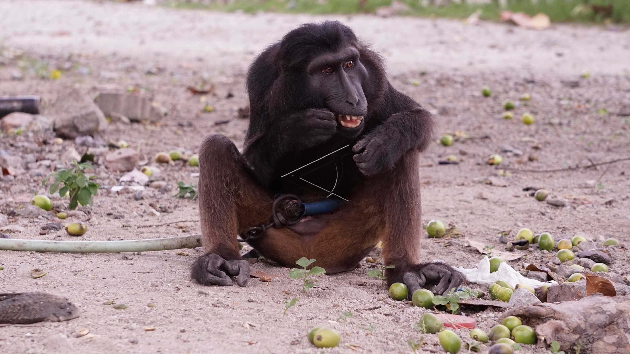 Seekor kera sulawesi (Macaca hecki) yang tertangkap warga di kawasan Jalan Tondano, Kota Gorontalo, Gorontalo, Selasa (24/11/2015). ANTARA FOTO/Adiwinata Solihin/dw/tom.