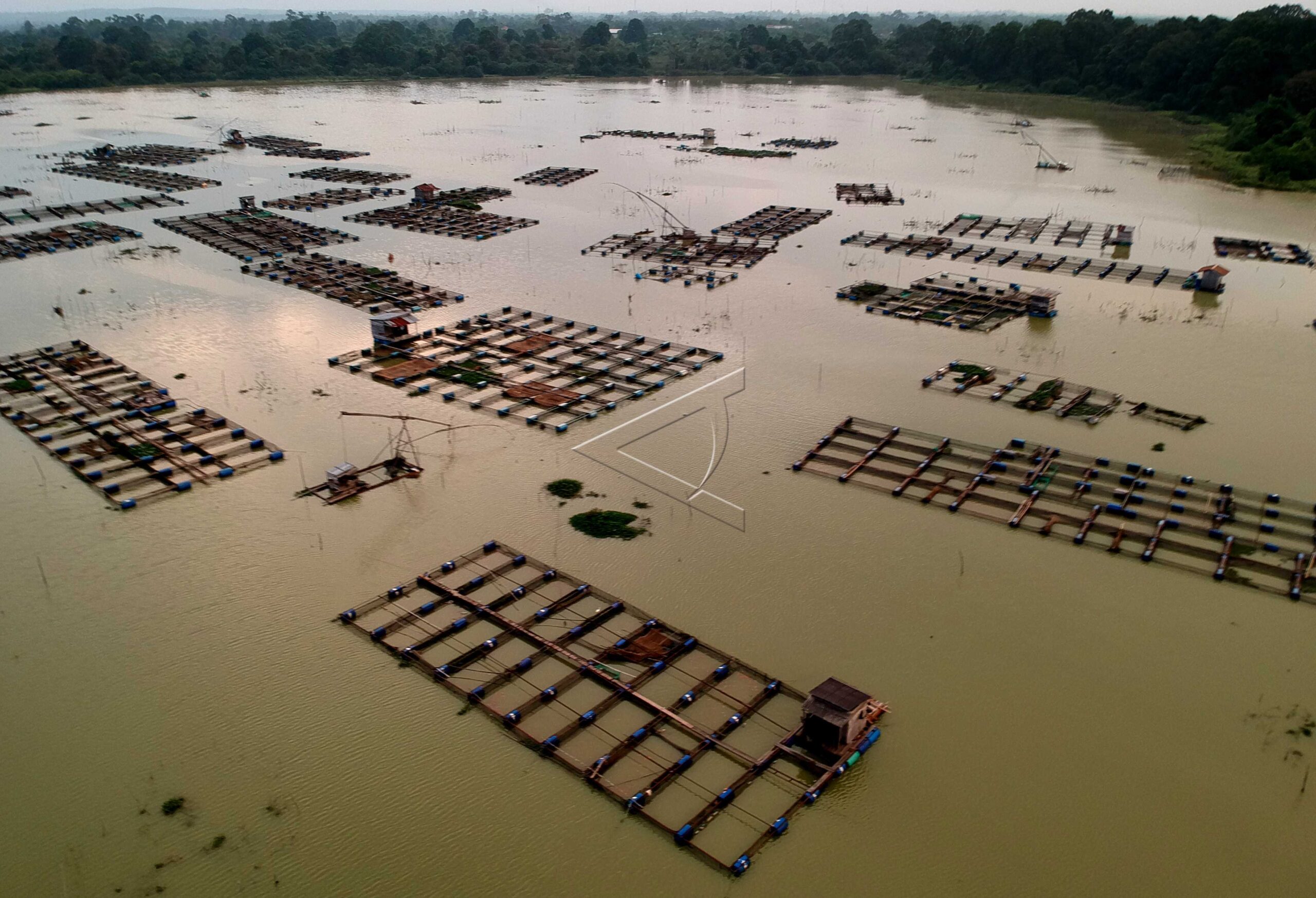 Keramba apung milik warga menghiasi kawasan Danau Teluk Kenali, Telanaipura, Jambi, Senin (15/10/2018). ANTARA FOTO/Wahdi Septiawan/dw/pras.
