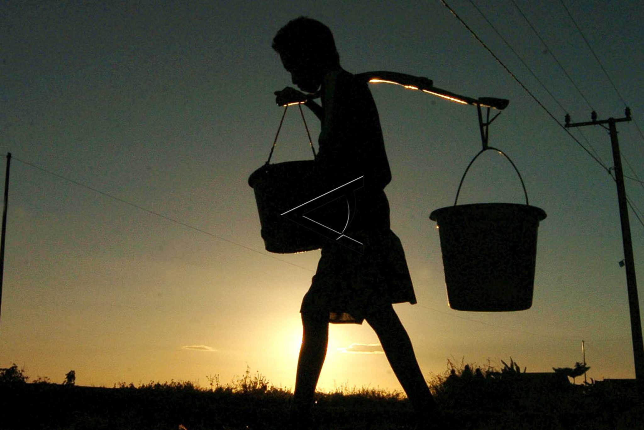 Seorang bocah mengangkat air bersih di Kabupaten Maros, Sulsel, Jumat (31/8/2007). Ribuan warga di daerah ini kesulitan mendapatkan air bersih sejak musim kemarau tahun 2007. FOTO ANTARA/Yusran Uccang/Koz/NZ/dw/07.